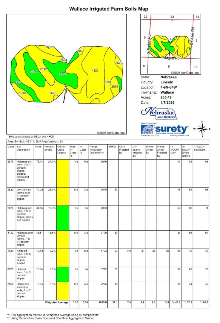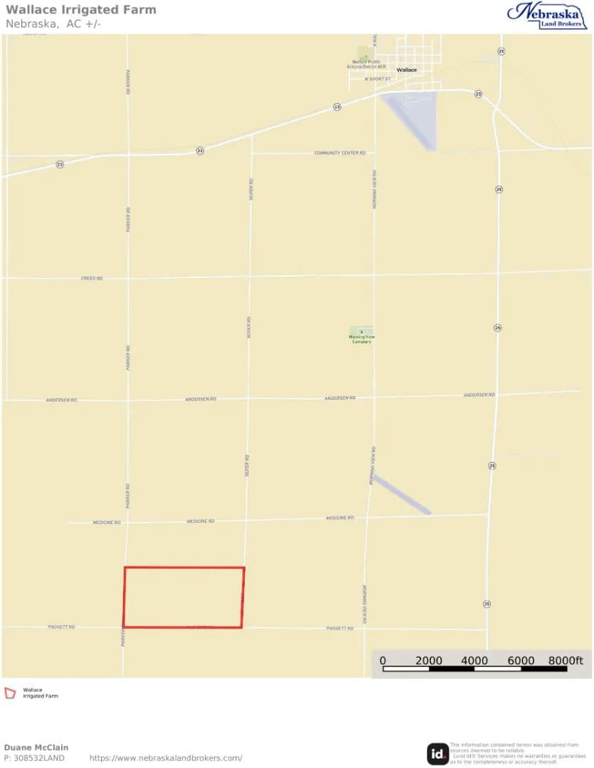 This opportunity is located south of Wallace, NE in southwestern Lincoln County in an area of quality pivot irrigated farms. Good county road access and productive soils make this farm something to consider.