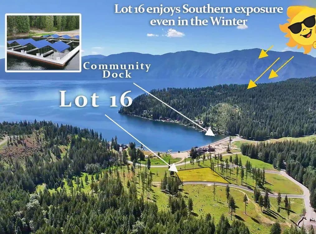 Become part of the exclusive, low-density, gated waterfront community of Camp Bay in Idaho, where you can enjoy southern exposure and gently sloped parcels. Lot 16 is a spacious 1.62-acre parcel featuring a 31-gallon-per-minute well, ensuring an ample water supply. This lot also includes a 30-foot covered boat slip in the community dock area, providing easy access to Lake Pend Oreille. Owners of Lot 16 will have access to the community beach, a minor structure with bathrooms, fire pits, and a family gathering space. Camp Bay boasts over 41 acres of open space, perfect for enjoying local wildlife and walking trails with family and friends. The roads are all paved, and each driveway has power and high-speed internet connections ready to go. Camp Bay is conveniently located about a 10-minute boat ride from some of the best restaurants on Lake Pend Oreille and a 30-minute drive from Sandpoint, Idaho, and the renowned Schweitzer Mountain Ski Resort.