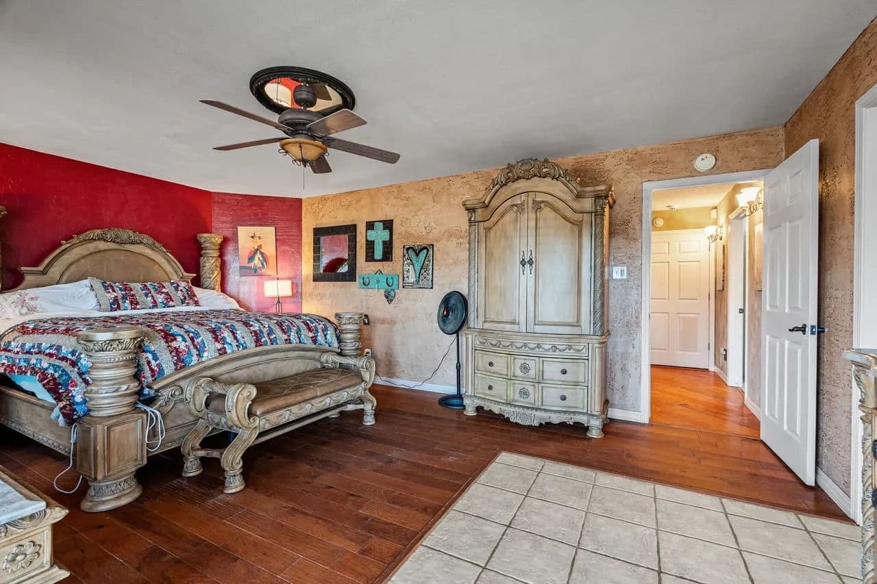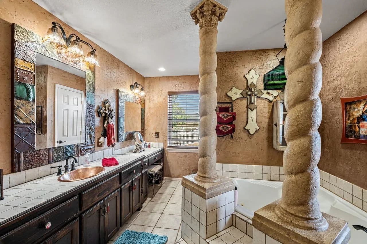 The main residence features four bedrooms and three and a half bathrooms. The guesthouse adds an additional one bedroom and one bathroom, perfect for visitors or extended family.