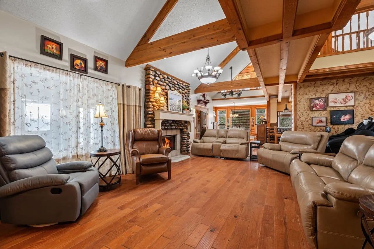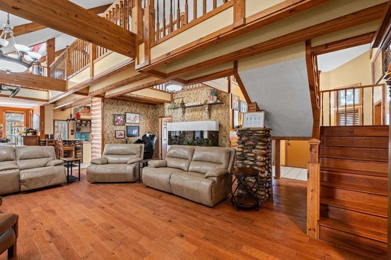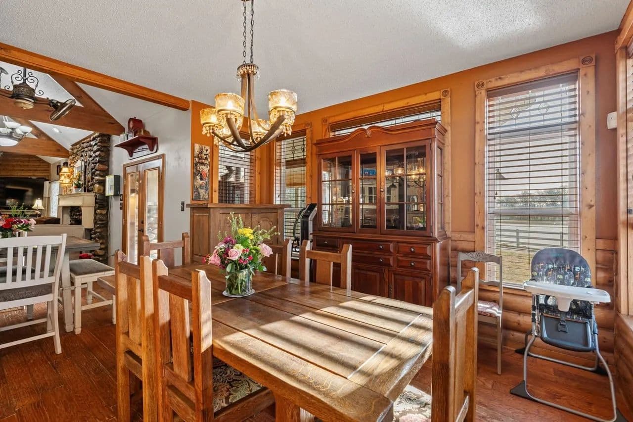 The estate also features a large metal workshop, complete with three expansive lean-tos, offering ample space for projects, storage, or business endeavors. The entire property is fenced and sectioned for horses and livestock, ensuring safety and convenience.