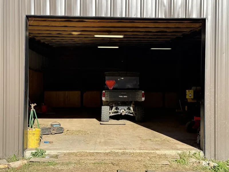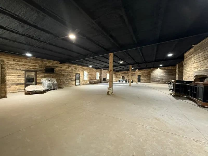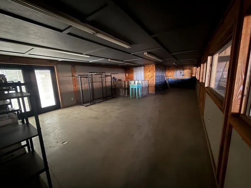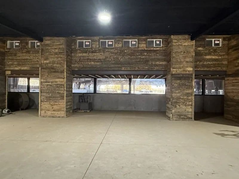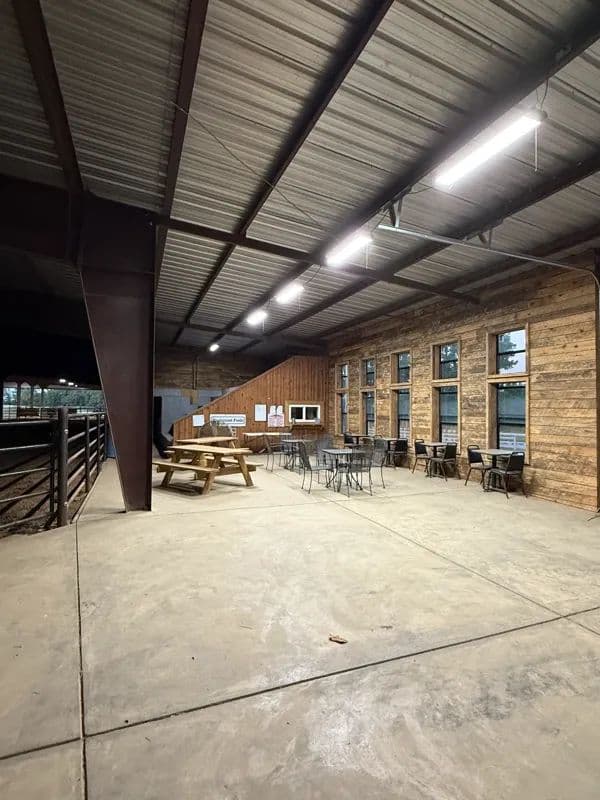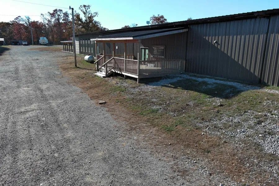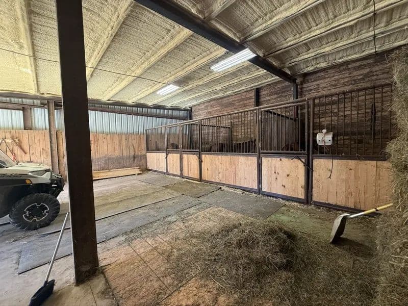 Private Barn Facilities: The building cleverly integrates separate indoor stalls specifically for the owner's horses, complete with a dedicated feed room and storage area. Direct, convenient access is provided via a roll-up door to the main parking lot.