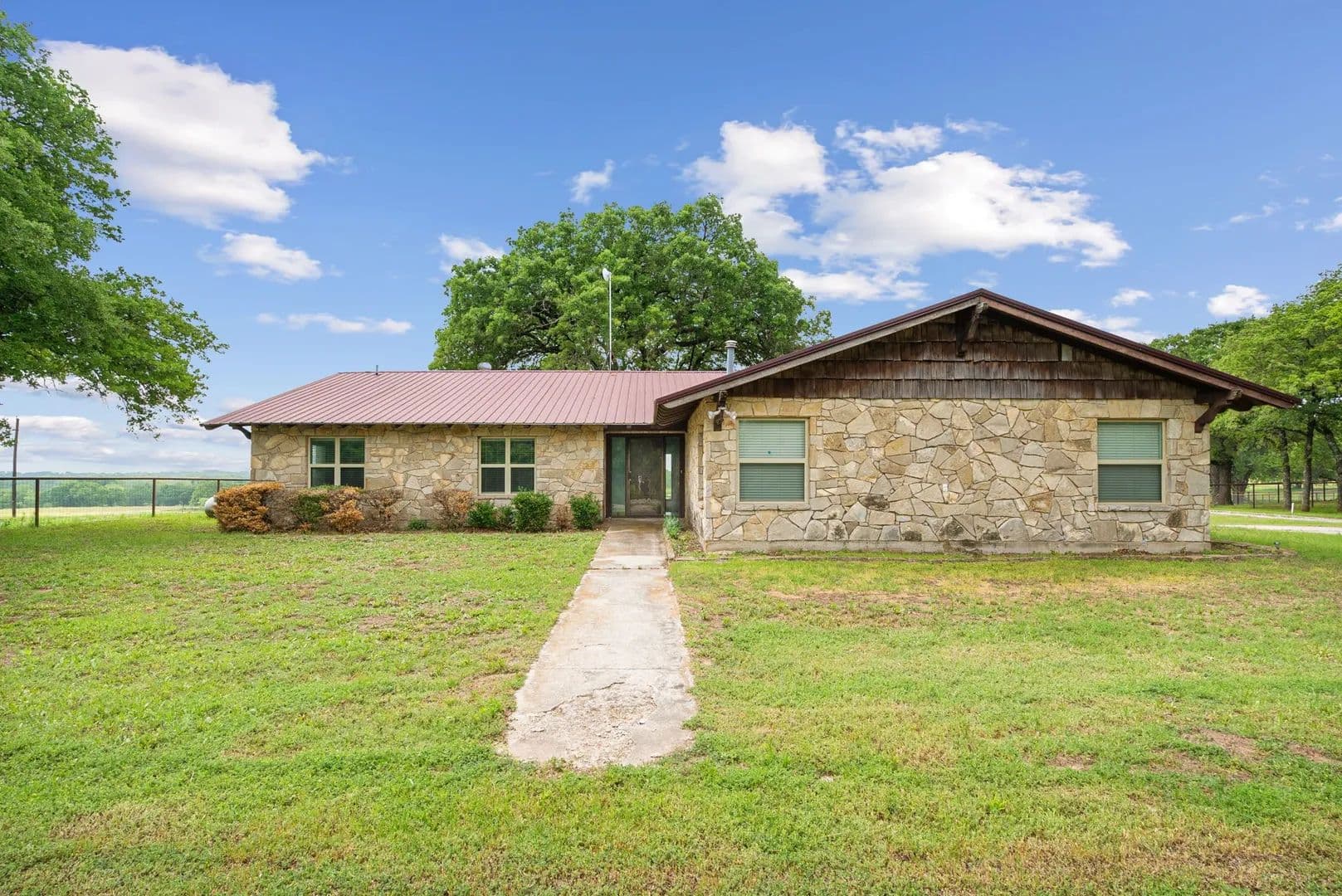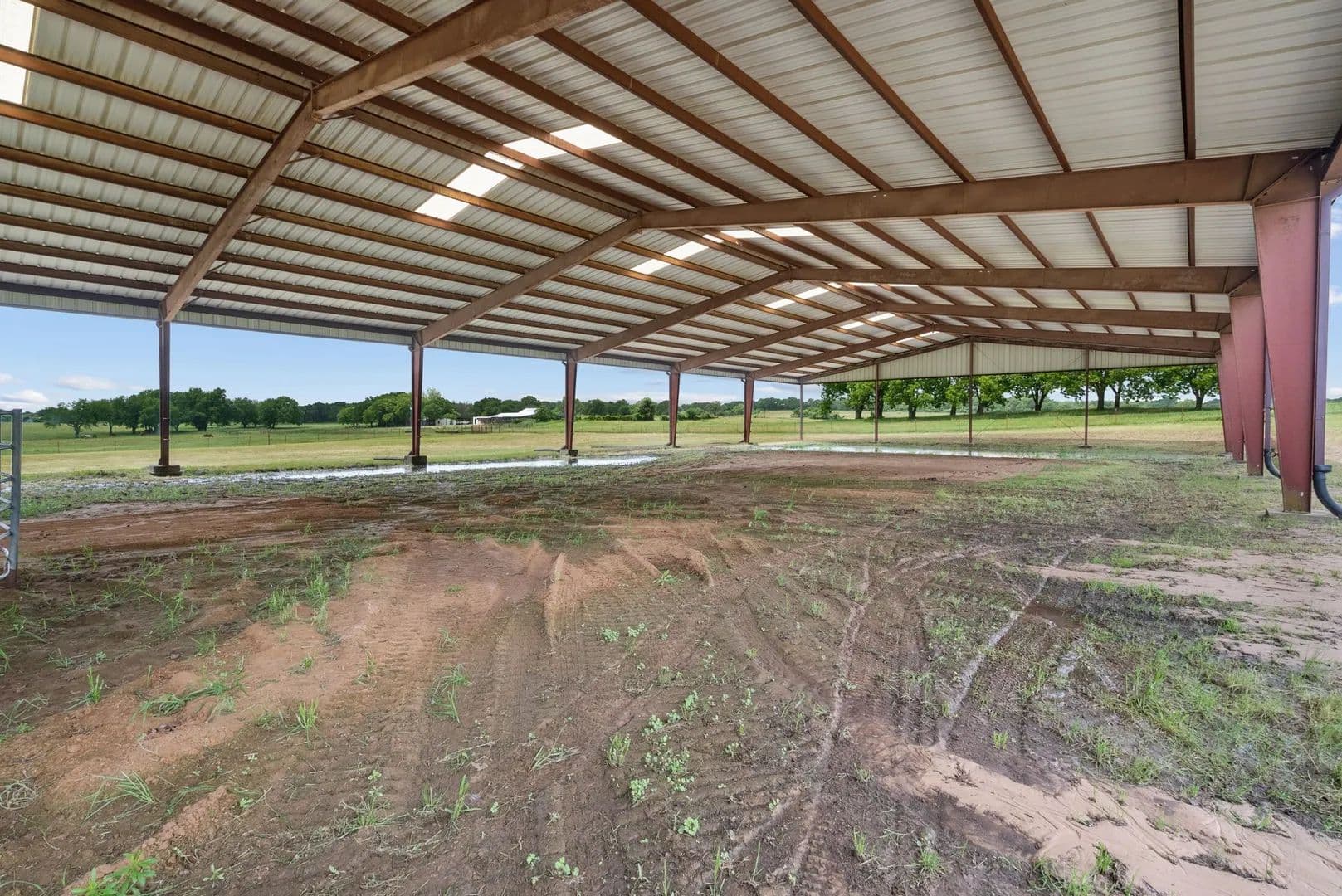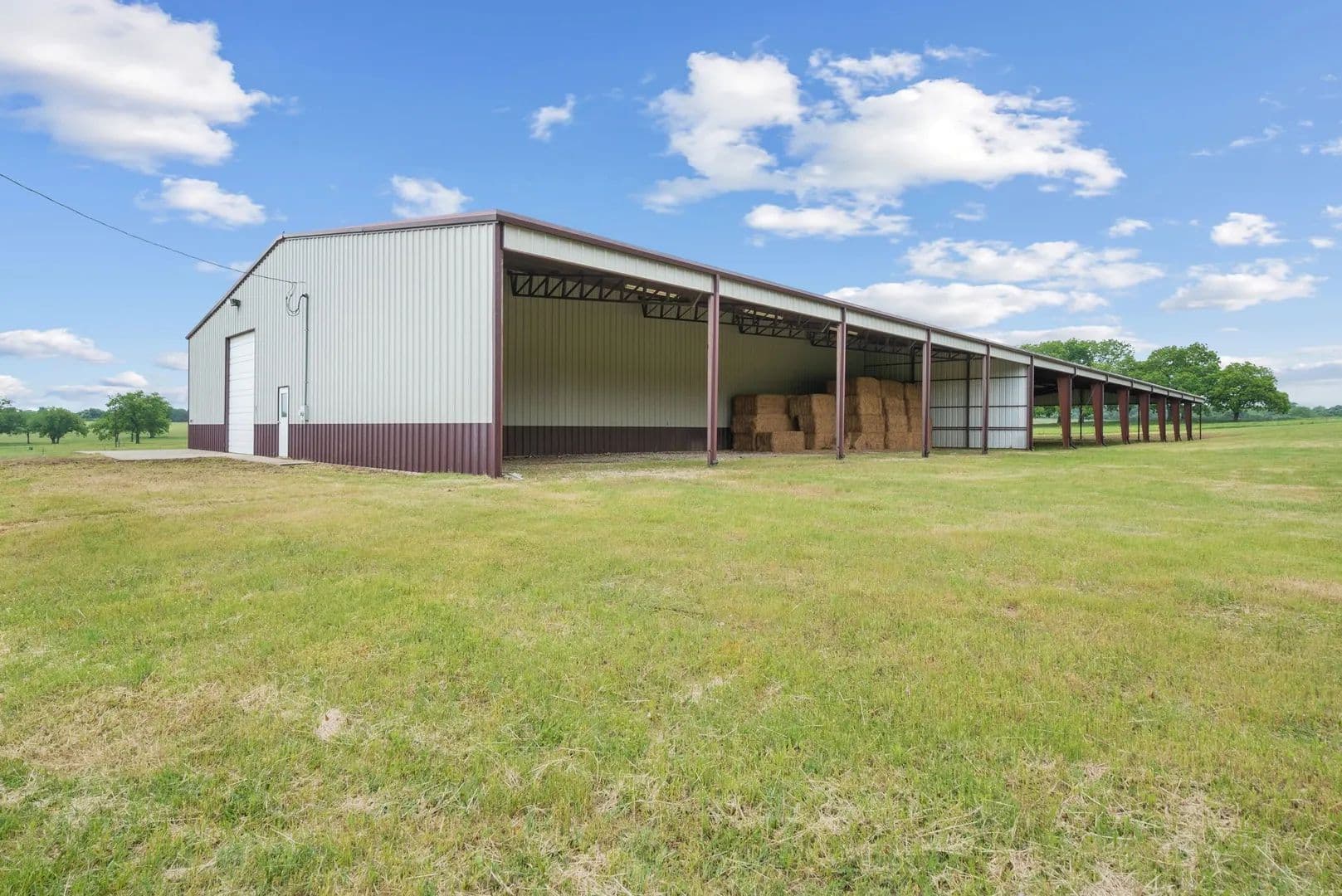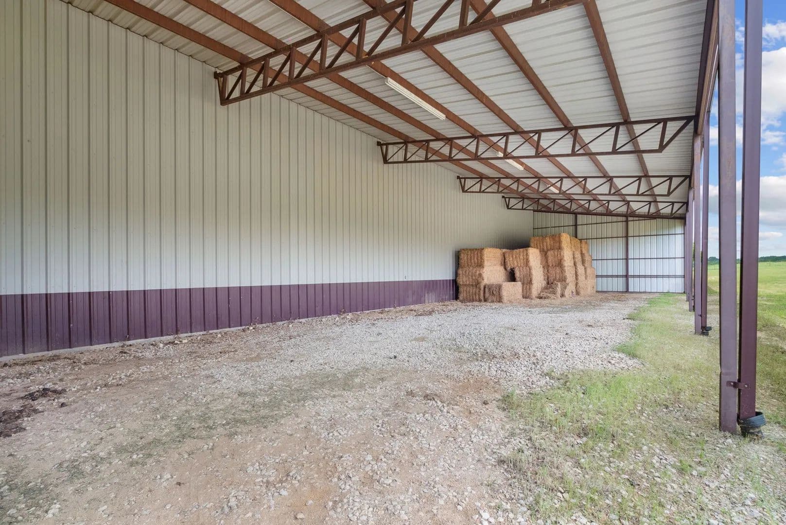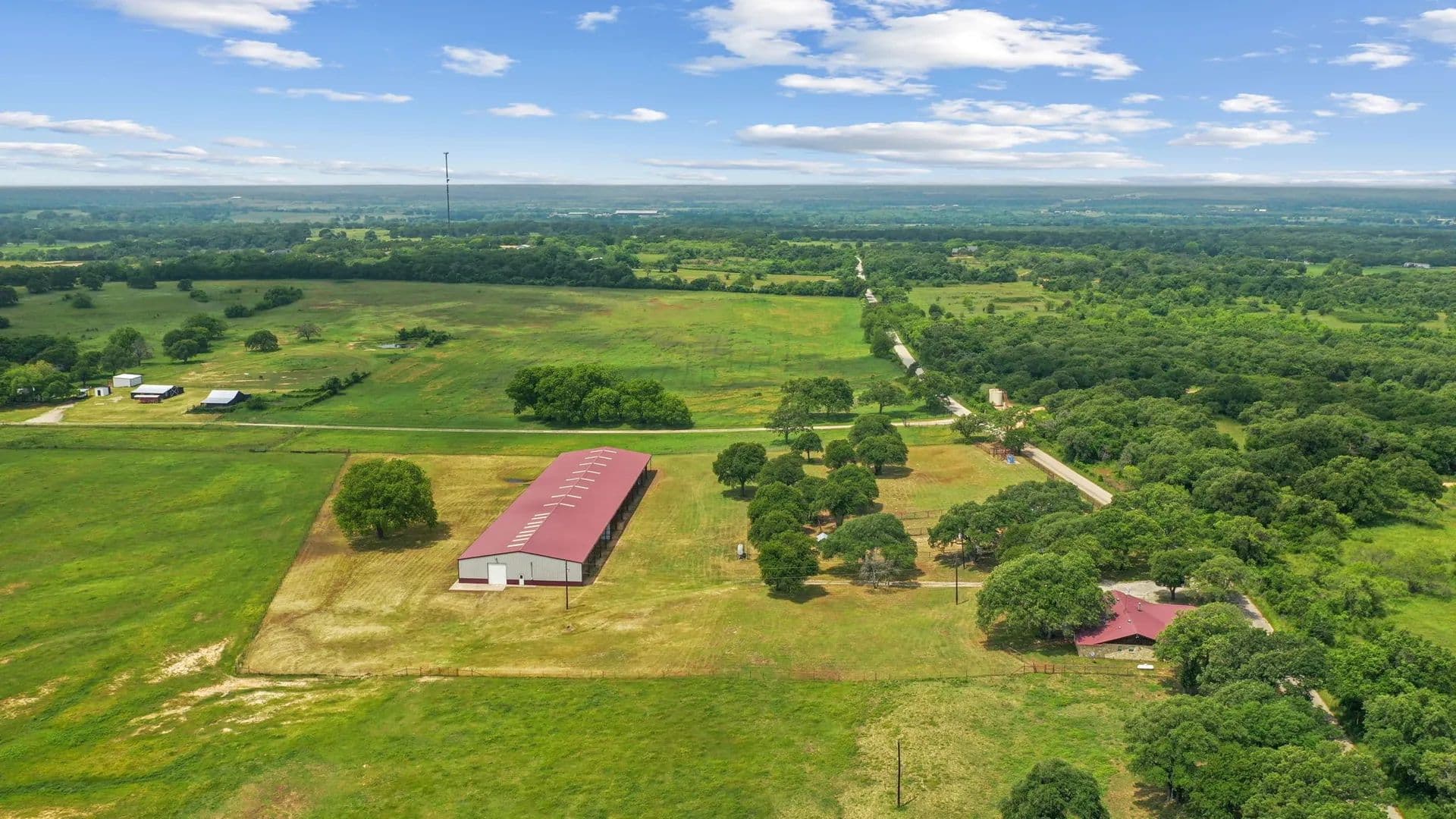 This is a rare find & unique opportunity to own 85 gorgeous acres of coastal fields just 1 hour west of the DFW Metroplex. And, it has a covered arena! Fenced & cross fenced, this property can support cattle or equine operations. Looking for a getaway where you can watch deer and wild turkey as you fish in 1 of the property's 2 ponds, this is the place. Need a place to expand your working ranch, there's space to customize and make this one extra special. The home has good bones w some updates and just needs cosmetic finishes. The stall barn could easily be improved with runs as there are pipe pens off both sides. The shining gem is the 100x265 metal building. Inside, you'll find a 100x50 enclosed shop with electricity, a large sliding door and plenty of space for storage or tinkering. There's also a 30x100 overhang for additional storage. Off the back, there is a 165x80 covered riding arena that could suit many disciplines. Imagine the breakaway calf lane you could have!