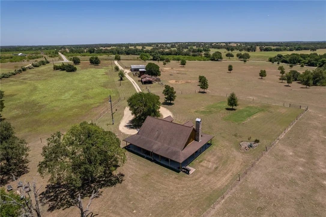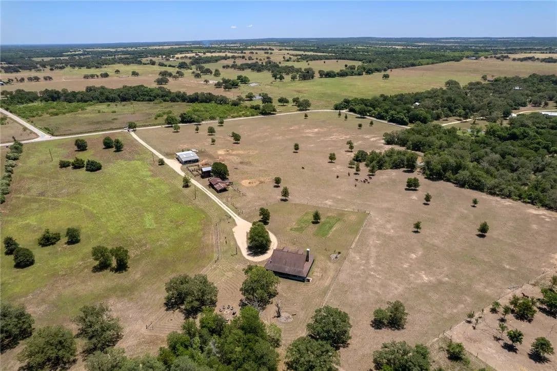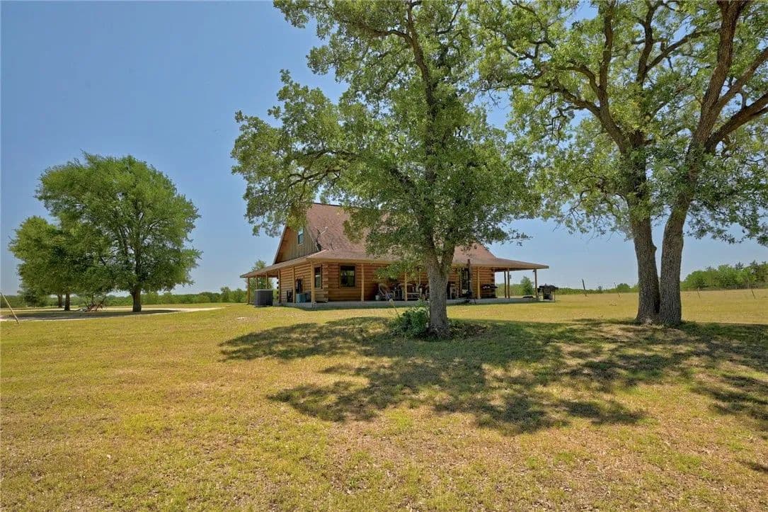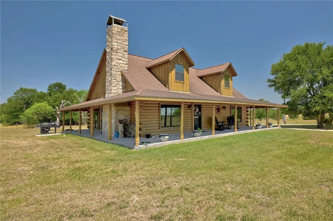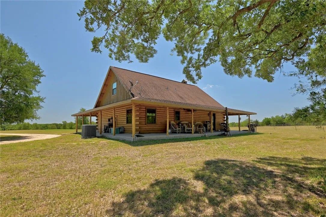 30.86 sprawling Acres featuring a stunning, custom-built, log-home…nestled atop a gentle hill offering miles of unobstructed views. Loaded with tasteful details, custom accents & antique finishes throughout…this home is truly one of a kind. Tucked back off the the main road w/gated access for added privacy & security. Property is fully fenced, w/2 separate working pastures, ideal for rotational grazing. A gorgeous stock tank surrounded by mature trees, offers a nice reprieve from the Texas heat. Featuring a well-thought floorpan & an open concept w/ vaulted ceilings & ample windows allowing an abundance of natural light. Breathtaking views can be enjoyed from nearly every room or enjoyed from the expansive wrap-a-round porch. The primary suite & spa-like bath are situated on the 1st floor, tucked away from the common areas. There is an addtl 1/2 bath down for guests. The upstairs features an oversized bedroom & full bath w/a nice loft/flex space. The property is fully fenced & benefits from the current AG exemption. Open, rolling fields attract many birds, deer, and turkey. Sections of heavily wooded, mature forest remain offering a nice mix of post oaks, elms, cedars, pecans, black walnut & various understory trees, amongst an expansive open prairie. Years of hard work, dedication & diligence are evident throughout the property. Both pastures were responsibly & thoughtfully cleared, seeded & fenced with several heritage oaks, elms & pecans left standing tall throughout. Property also has 3 outbuildings loaded with functionality & potential incl. a recently built 30x40 (12000 SQFT) metal shop w/roll up doors & an attached covered RV pad. 2. A large barn loaded with potential, easily converted to an expansive indoor/outdoor entertaining space. 3. A 2-story, bunk-house, fitted with a loft, balcony & electricity could easily be reclaimed to serve as guest quarters. Easy commute to Circuit of The Americas, ABIA, Austin, Bastrop, and TESLA.