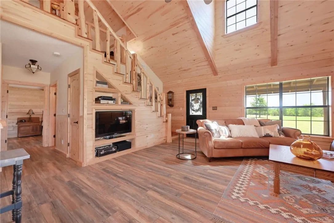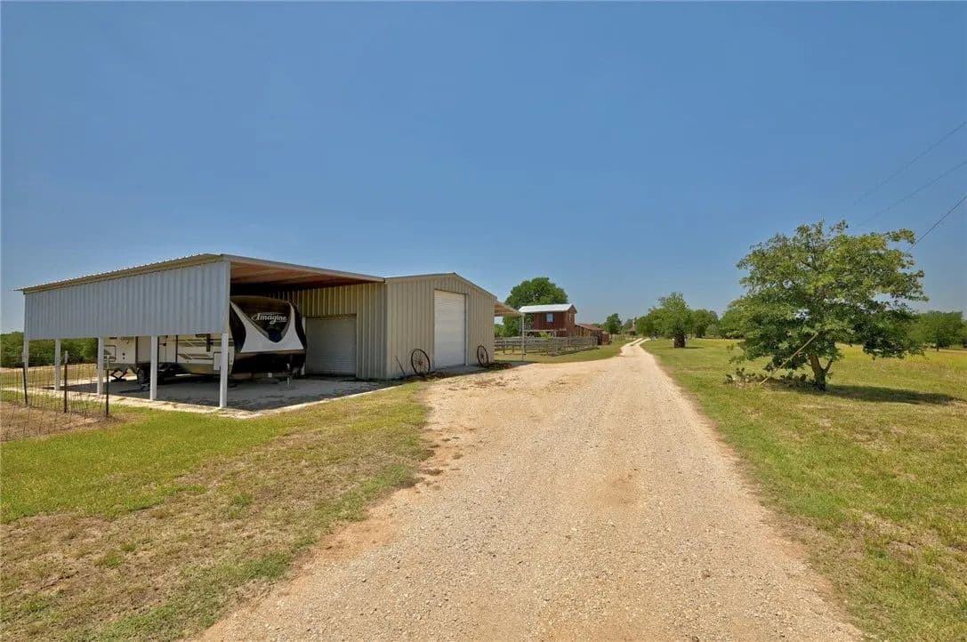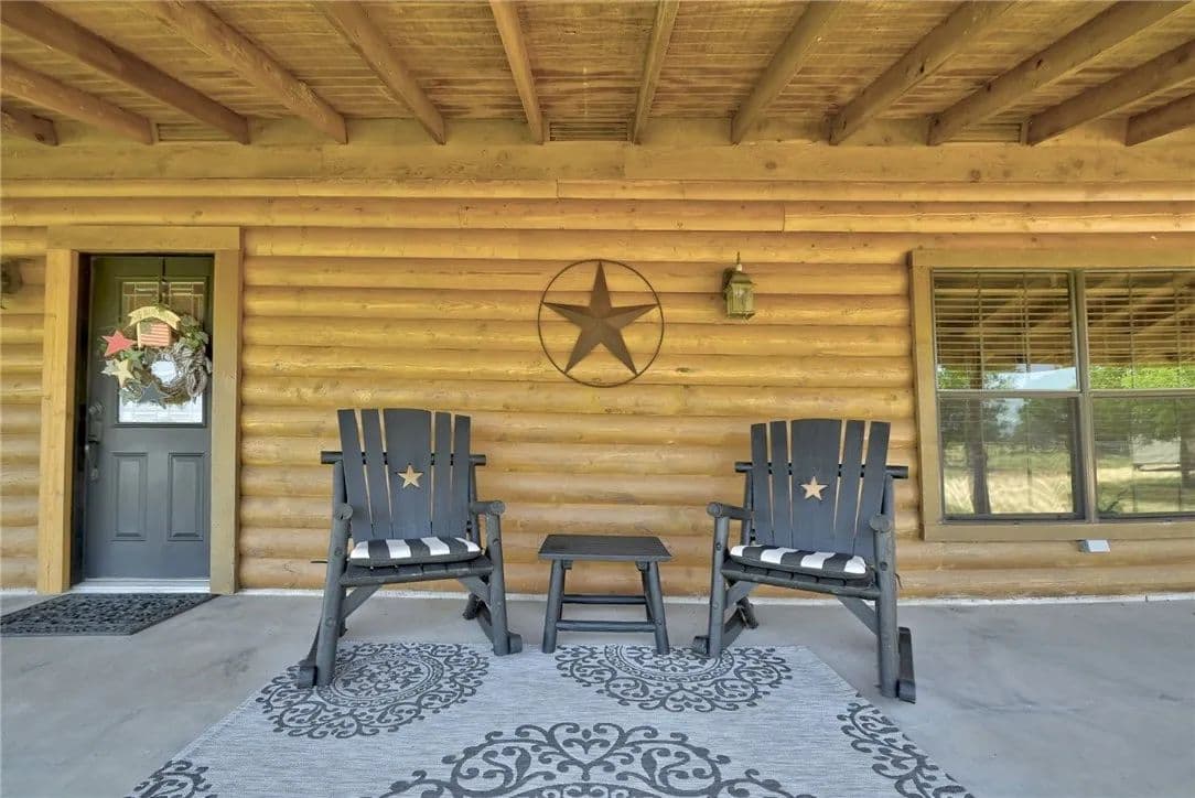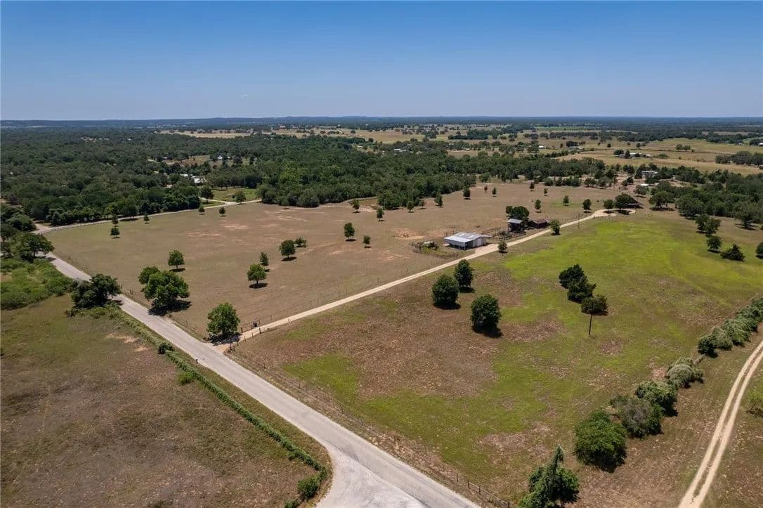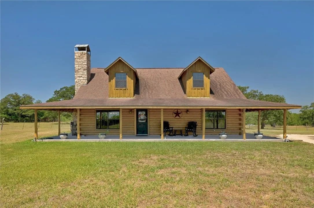 30.86 sprawling Acres featuring a stunning, custom-built, log-home…nestled atop a gentle hill offering miles of unobstructed views. Loaded with tasteful details, custom accents & antique finishes throughout…this home is truly one of a kind. Tucked back off the the main road w/gated access for added privacy & security. Property is fully fenced, w/2 separate working pastures, ideal for rotational grazing. A gorgeous stock tank surrounded by mature trees, offers a nice reprieve from the Texas heat. Featuring a well-thought floorpan & an open concept w/ vaulted ceilings & ample windows allowing an abundance of natural light. Breathtaking views can be enjoyed from nearly every room or enjoyed from the expansive wrap-a-round porch. The primary suite & spa-like bath are situated on the 1st floor, tucked away from the common areas. There is an addtl 1/2 bath down for guests. The upstairs features an oversized bedroom & full bath w/a nice loft/flex space. The property is fully fenced & benefits from the current AG exemption. Open, rolling fields attract many birds, deer, and turkey. Sections of heavily wooded, mature forest remain offering a nice mix of post oaks, elms, cedars, pecans, black walnut & various understory trees, amongst an expansive open prairie. Years of hard work, dedication & diligence are evident throughout the property. Both pastures were responsibly & thoughtfully cleared, seeded & fenced with several heritage oaks, elms & pecans left standing tall throughout. Property also has 3 outbuildings loaded with functionality & potential incl. a recently built 30x40 (12000 SQFT) metal shop w/roll up doors & an attached covered RV pad. 2. A large barn loaded with potential, easily converted to an expansive indoor/outdoor entertaining space. 3. A 2-story, bunk-house, fitted with a loft, balcony & electricity could easily be reclaimed to serve as guest quarters. Easy commute to Circuit of The Americas, ABIA, Austin, Bastrop, and TESLA.