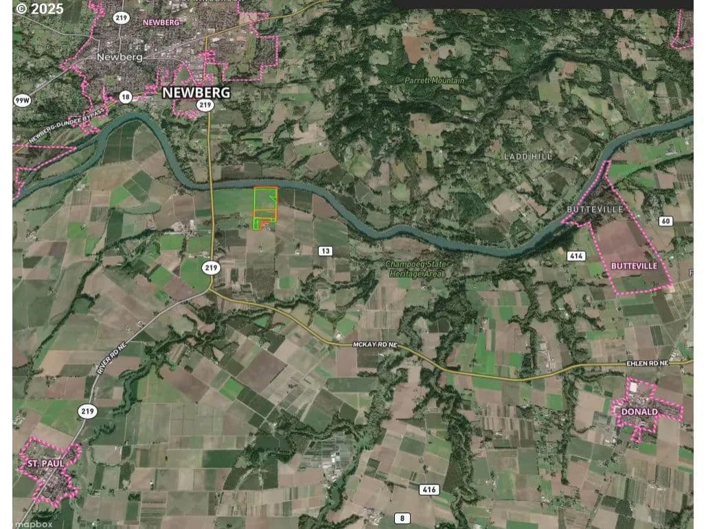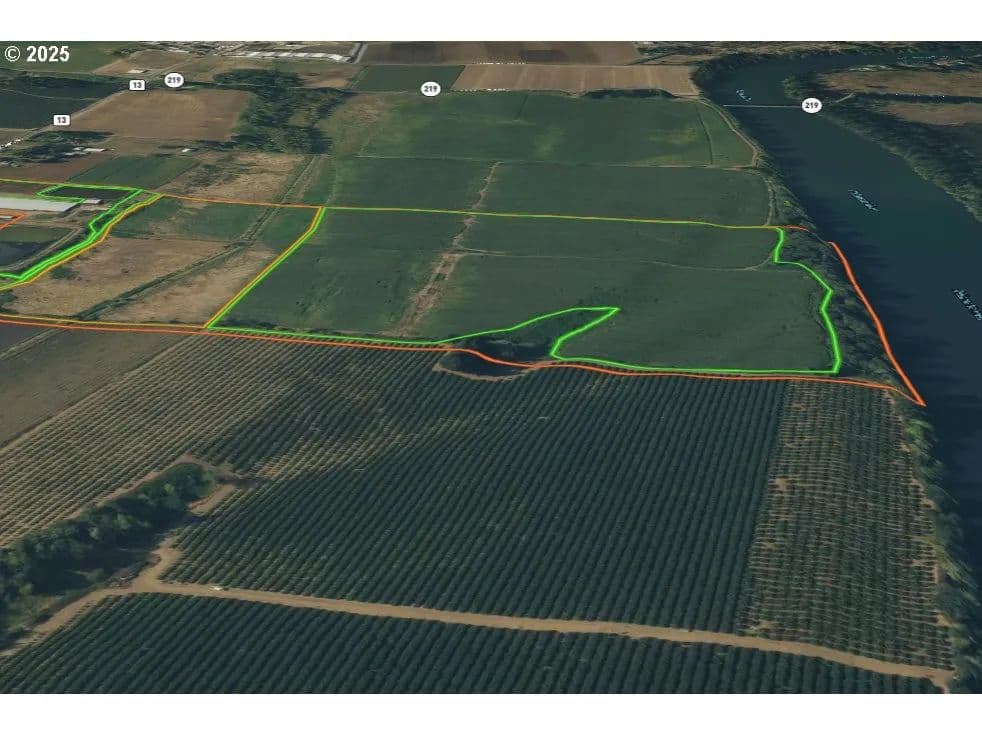 101± acre Willamette Riverfront Farm with EFU zoning, and secure water rights. Features diverse, highly productive soils including Chehalis, Amity, and Cloquato silt loams, plus 52,000 sq. ft. free-stall barn, hay cover, and former dairy setup. Historically farmed for corn and hay, currently leased for immediate income. Rare large-acreage parcel with good soils, water, and infrastructure, ideal for permanent crops, row crops Hazelnuts, Blueberries, or livestock
