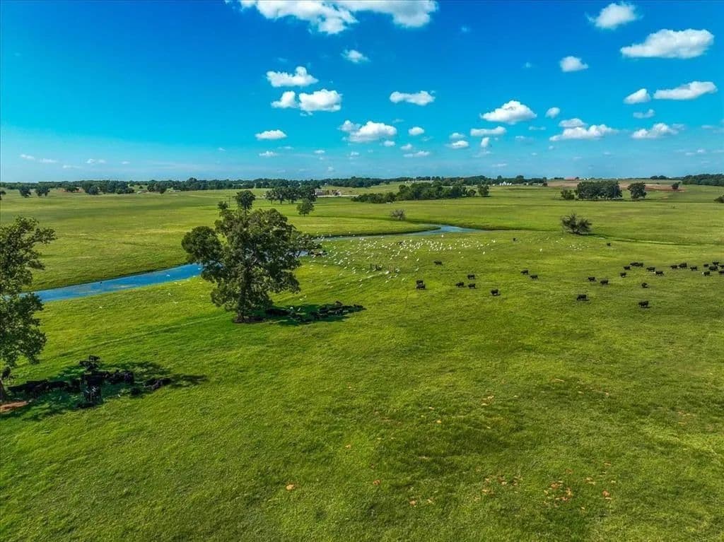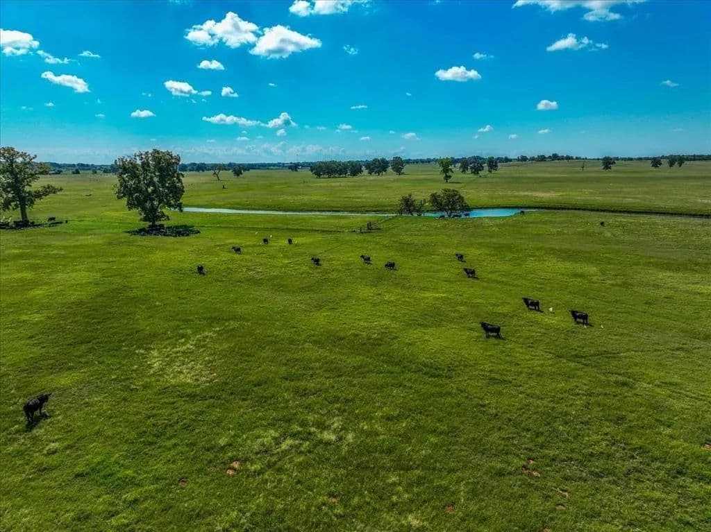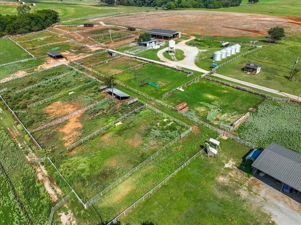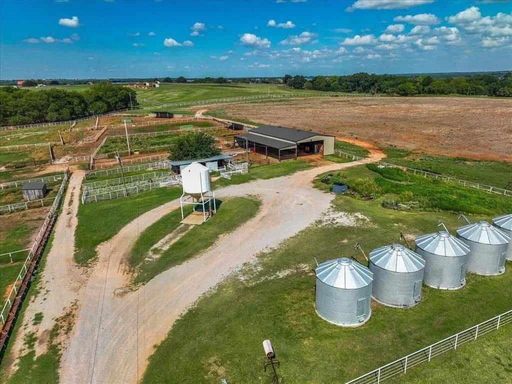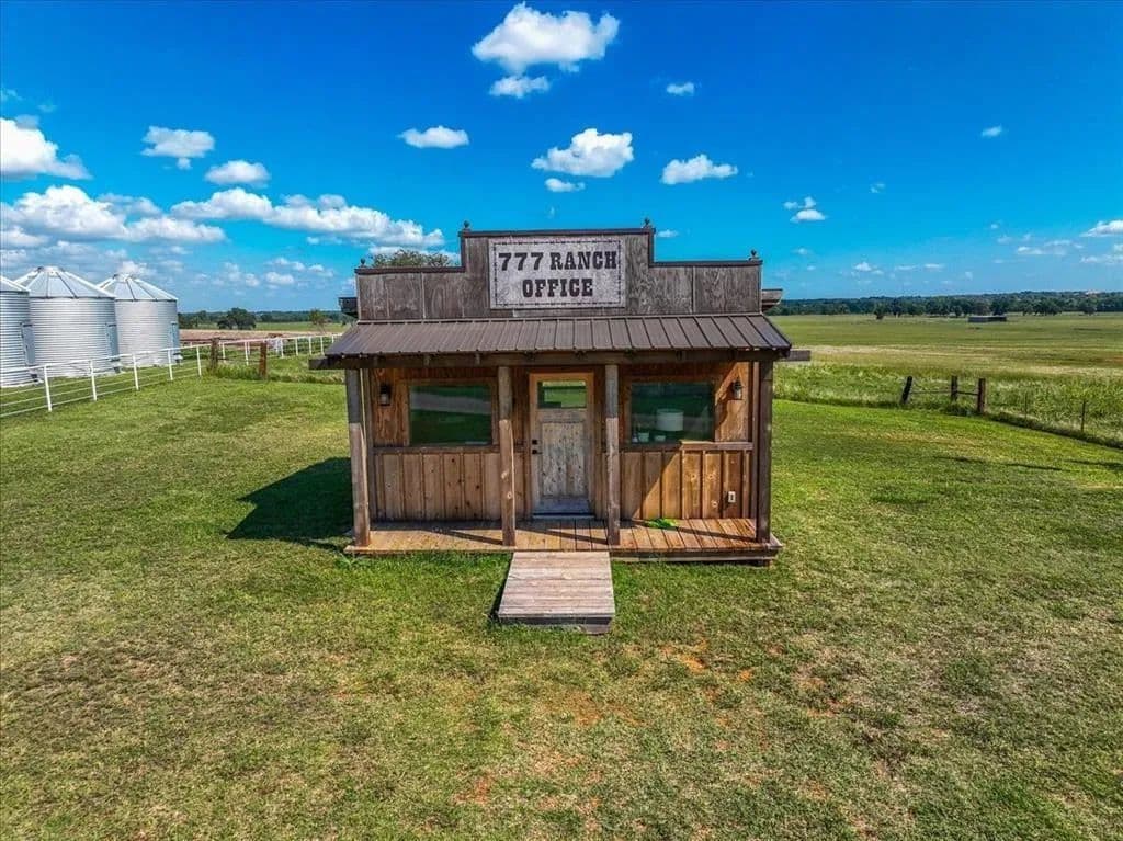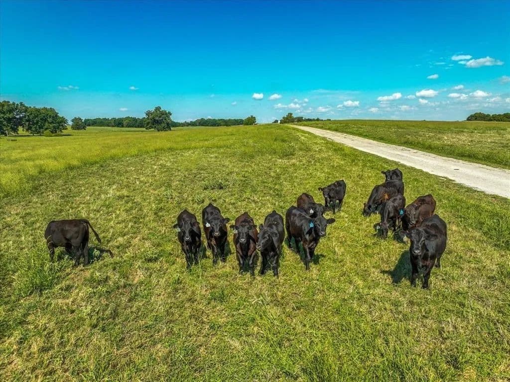 There are two homes on 812 acres of lush, improved Bermuda grass that can produce 5-6 rolls per acre. It offers 8 pastures, 5 water wells, 5 loafing sheds, 14 pipe pens with water that will hold 600 head, covered hydraulic working chute, 50 concrete feed bunks, 40x80 tool shed, shop, 2 barns, all buildings have lights, 12x20 office, 30-ton overhead feed bin and much more. The Austin stone bunkhouse was built in 2020; it has a paved driveway to the headquarters and beautiful mature shade trees. This one-of-a-kind ranch has a high-water table and produces a tremendous amount of grass; the owner runs 700 head of yearlings. The main home and bunk house specks are combined on the MLS sheet, so buyer should verify the square footage. The owner has transferable water rights to Walnut Creek. Come see all it has to offer; I think you will be impressed.
