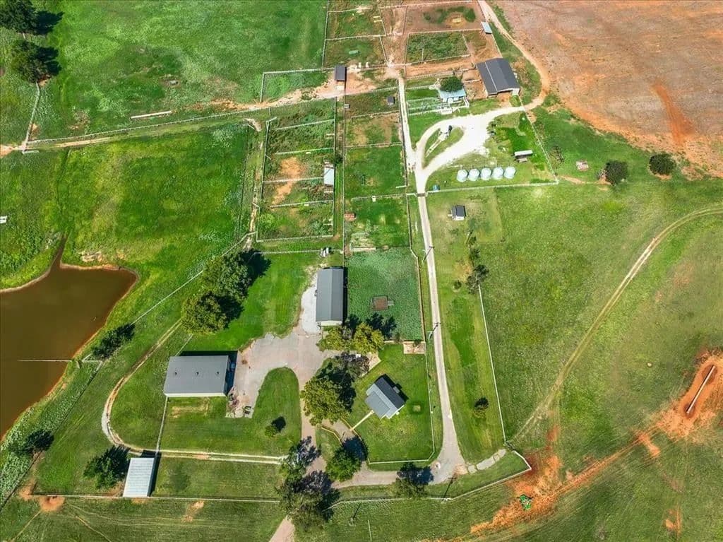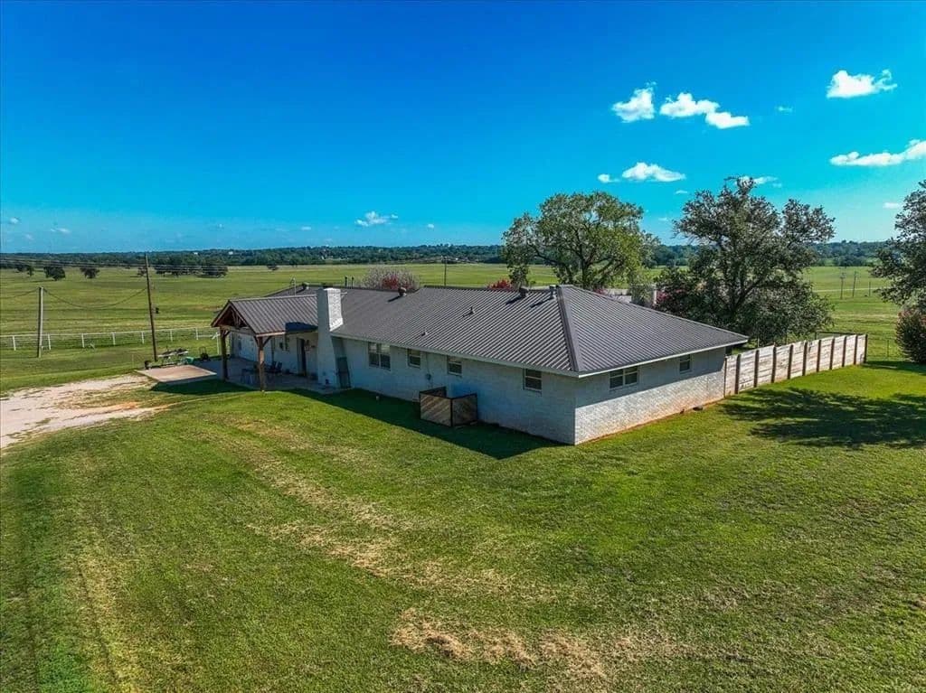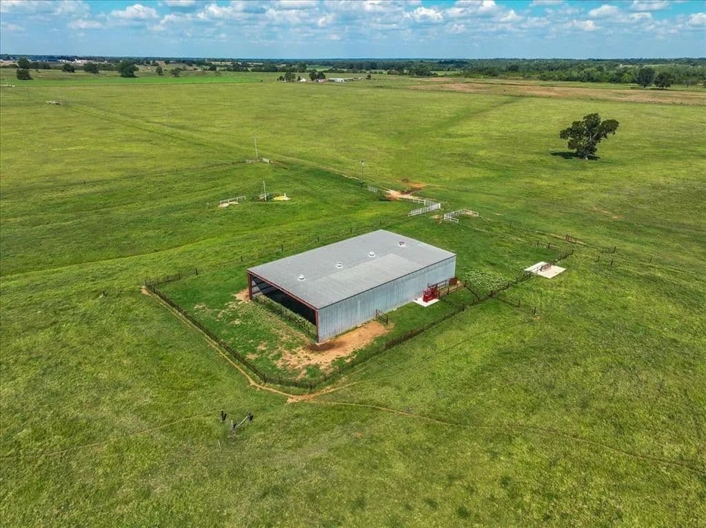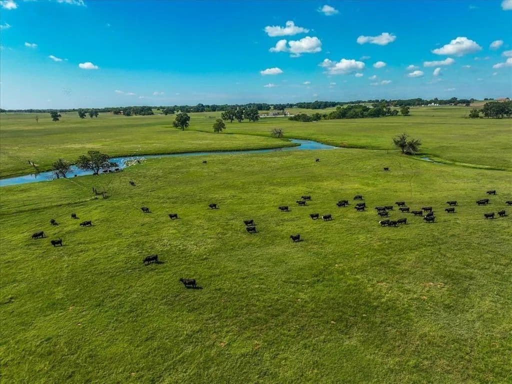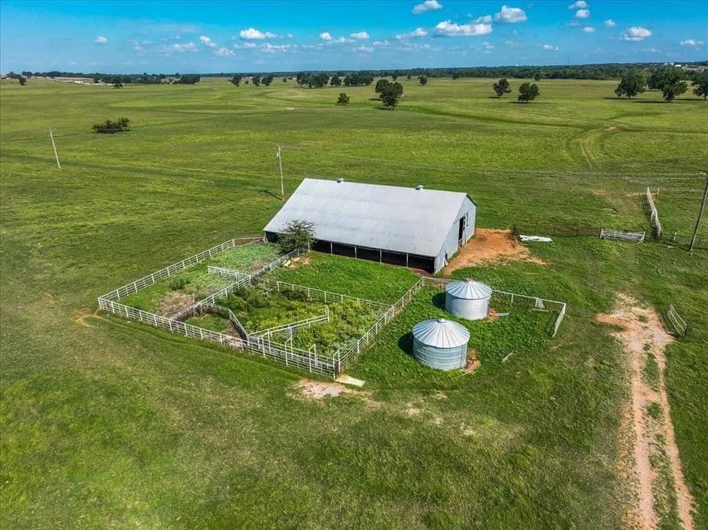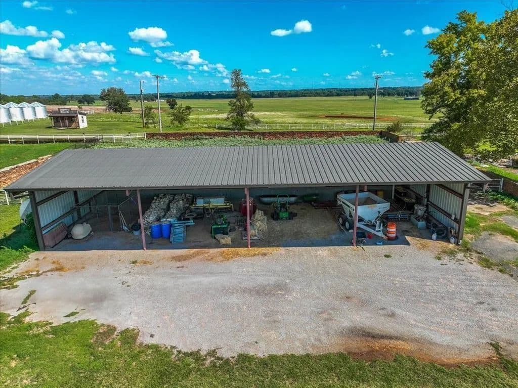There are two homes on 812 acres of lush, improved Bermuda grass that can produce 5-6 rolls per acre. It offers 8 pastures, 5 water wells, 5 loafing sheds, 14 pipe pens with water that will hold 600 head, covered hydraulic working chute, 50 concrete feed bunks, 40x80 tool shed, shop, 2 barns, all buildings have lights, 12x20 office, 30-ton overhead feed bin and much more. The Austin stone bunkhouse was built in 2020; it has a paved driveway to the headquarters and beautiful mature shade trees. This one-of-a-kind ranch has a high-water table and produces a tremendous amount of grass; the owner runs 700 head of yearlings. The main home and bunk house specks are combined on the MLS sheet, so buyer should verify the square footage. The owner has transferable water rights to Walnut Creek. Come see all it has to offer; I think you will be impressed.