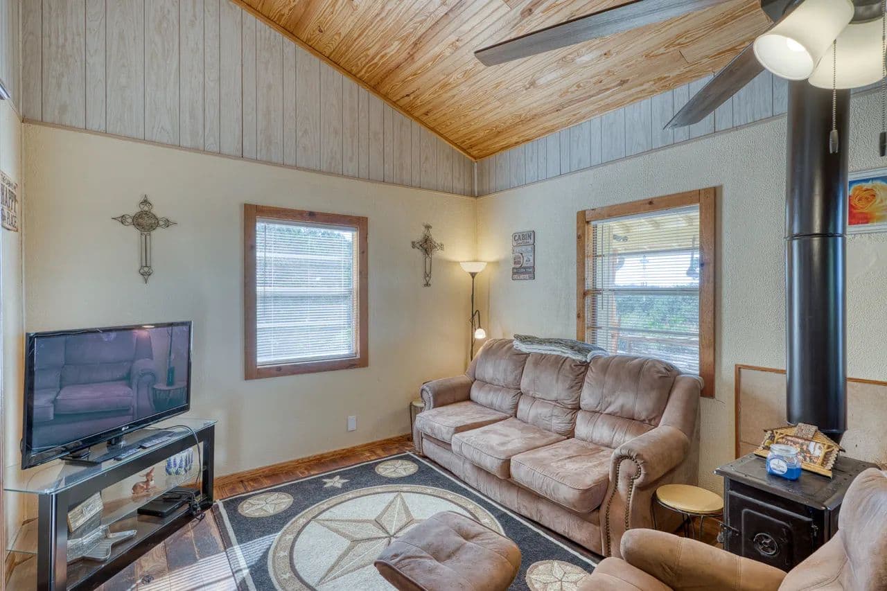 A cozy 576 sq. ft. cabin with covered patio provides the perfect weekend getaway or hunting retreat — complete with electricity already on the property. The land features a mix of gentle terrain and rolling hills, with scattered oaks and native brush creating ideal cover for deer, turkey, and other native game.