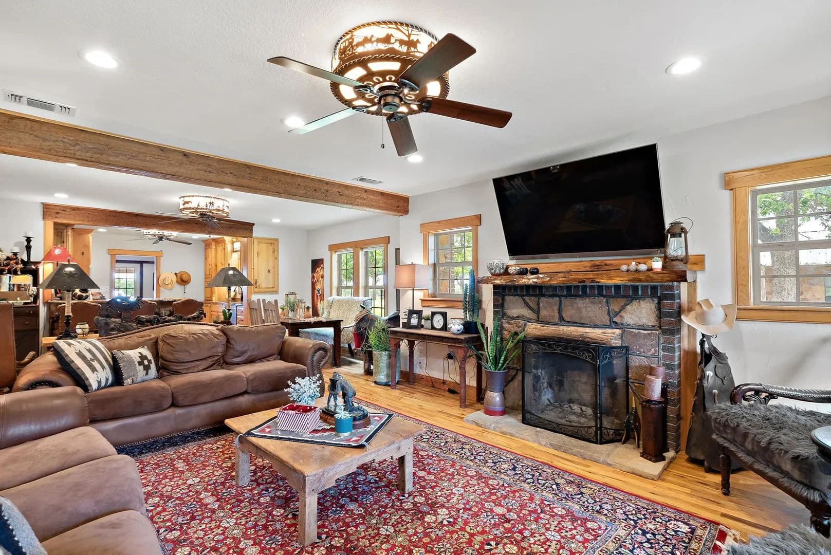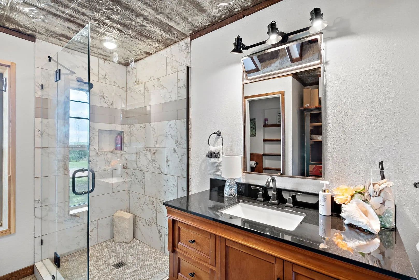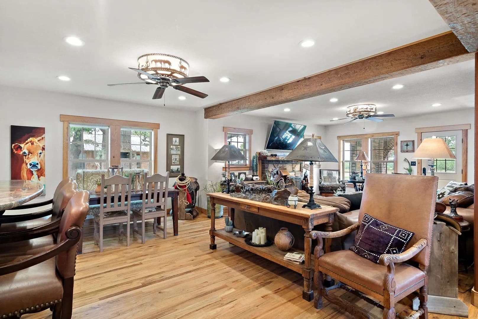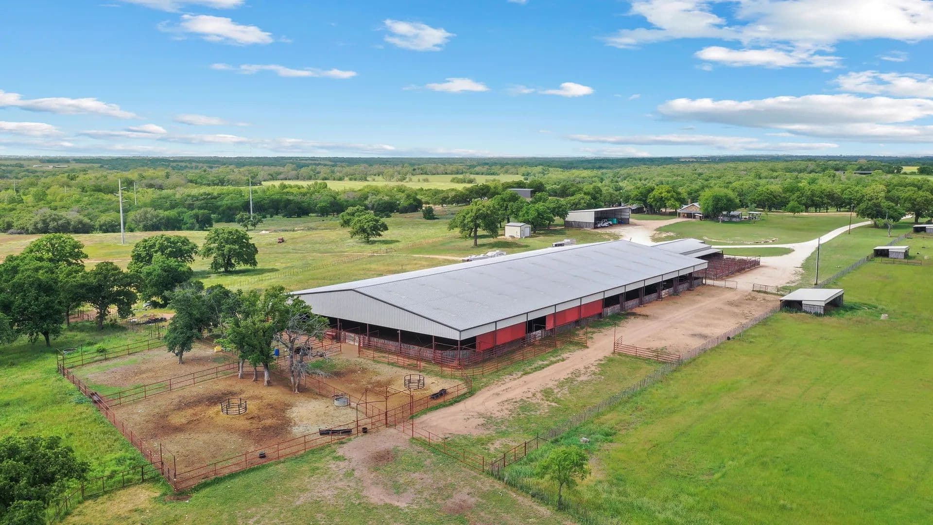 RSVP for the Open Ranch event Thursday, May 2nd, 12:00-5:00 PM. The Wallace's Leon River Ranch is an exceptionally clean, turnkey working ranch with professional grade horse facilities, located just 22 miles from Stephenville. From the gate to the furthest corner of the river bottom, this ranch is immaculate, functional and productive. The owners searched for abundant groundwater and productive soils, and they found them here. Now they are ready to pass the reins to the next owner who will benefit from the facilities. The ranch is well known for the large 250'x125' covered arena, which doubles as a roping and cutting pen. Other highlights include a 10 stall barn, 6 water wells, four irrigation wells, ability to irrigate 20 acres of paddocks, working pens, and good cross fences. In 2021 they cut 750 bales of hay were cut, and cut 370 in the drought of 2022. The main house was tastefully remodeled and updated with granite, luxury fixtures, commercial appliances, and swimming pool.