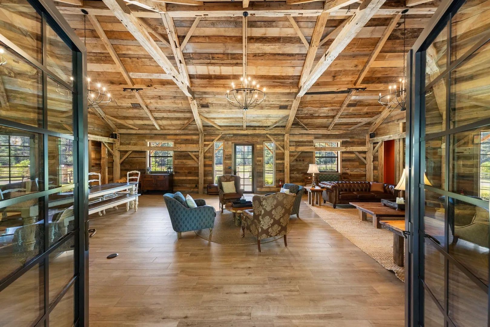 Nestled on 60+ unrestricted acres near Sam Houston National Forest, this remarkable property blends historic charm & modern luxury. W/ 22,000sqft of restored space across 11 buildings, renovated from 2017-2023, it feat. 21 beds, 19 baths, 4 half baths & 5,000sqft of covered patios. Highlights incl. 3,500sqft 1885 farmhouse w/ 4 beds/4.5 baths, 7,500sqft event barn crafted from 1840s barns w/ commercial kitchen, 2,500sqft move-in ready lodge w/ 3 beds/3.5 baths, kitchen & laundry, 2,300 sqft red pool barn, private cottages, 1,500 sqft modern gameroom, & air-conditioned yurt. Amenities incl. 2 pools, 2-acre pond, hiking trails & outdoor entertainment spaces. Paved driveways lead to parking for 200+ cars, ideal for events, retreats, or a private family compound. Just 35 mi from The Woodlands & an hour from Houston, this serene escape is both convenient & secluded. Modern utilities incl. 2 wells, fiber internet & 2 generators. Endless possibilities await—schedule your private tour today!