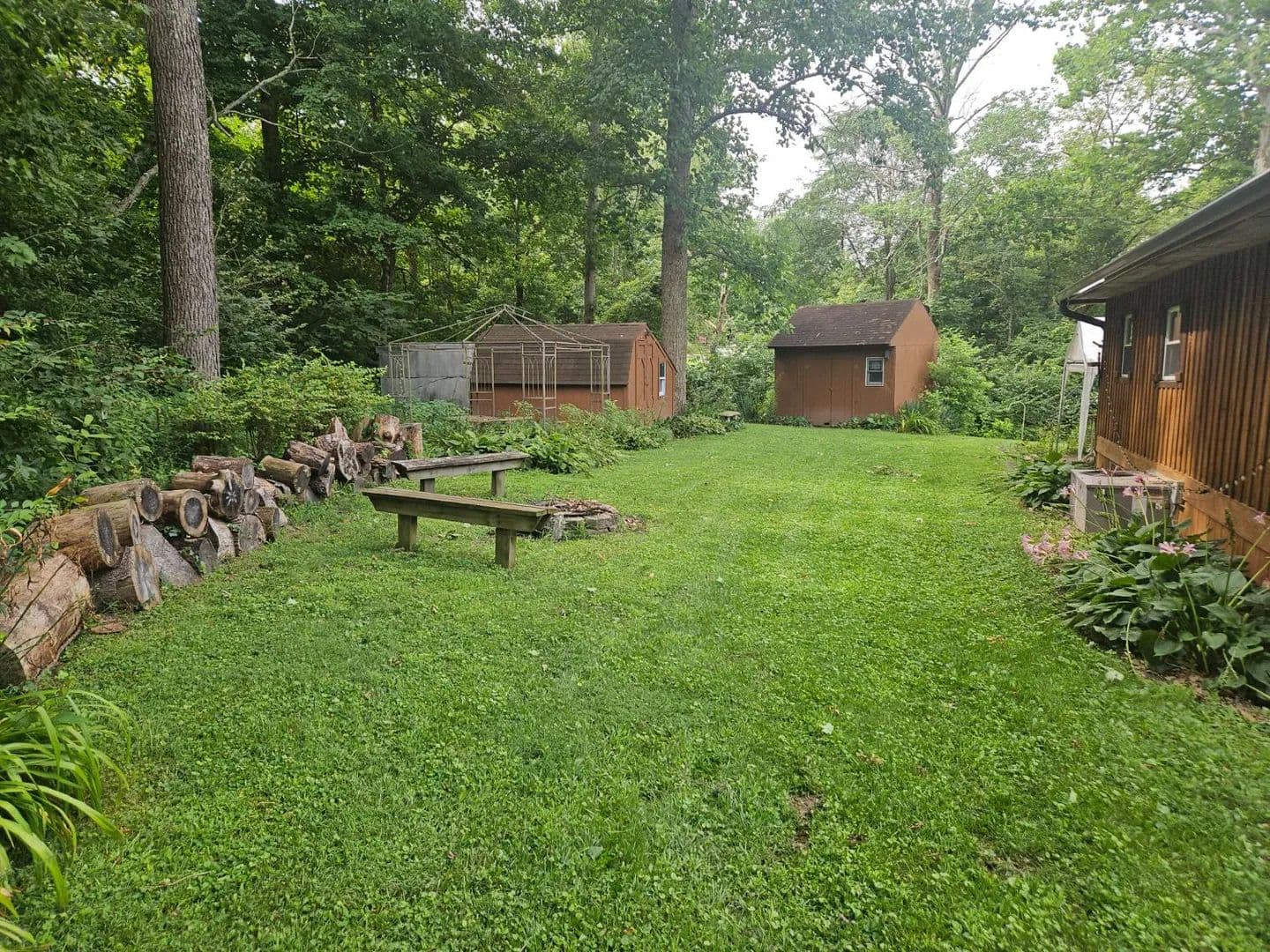 Here is your opportunity to own an incredible campsite near Brookville lake. This is a double camp site with a camper that has been added onto and offer plenty of room for friends and family. Along with the camper that stays with the property you will find two out buildings great for storing essentials and toys for the lake. The property is in the cul-de-sac and offers a quiet peaceful space to relax. Heritage Hills Campground has a very nice swing set, poll, and even has two very nice lakes to fish in.