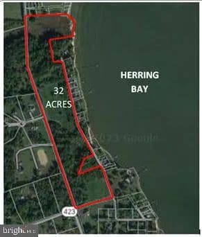 This 32 acre parcel has a great view of Herring Bay. The parcel has a small sliver of R-2 zoning, a bit of open space but the bulk of the parcel is residential agricultural. Because of it's zoning, it can be subdivided but in order for the resulting parcels to be buildable there is a 20 acre minimum requirement. That means that one home can be built with a remained piece of about 12 acres that would not be buildable. The lot is primarily flat, level and partially cleared. Potential access to Herring Bay actually making this a waterfront parcel with some frontage on Herring Bay. Great views and potential for development as described above. Besides residential uses, R-1 zoning permits assisted living facilities, group homes and places of worship (churches, etc.).