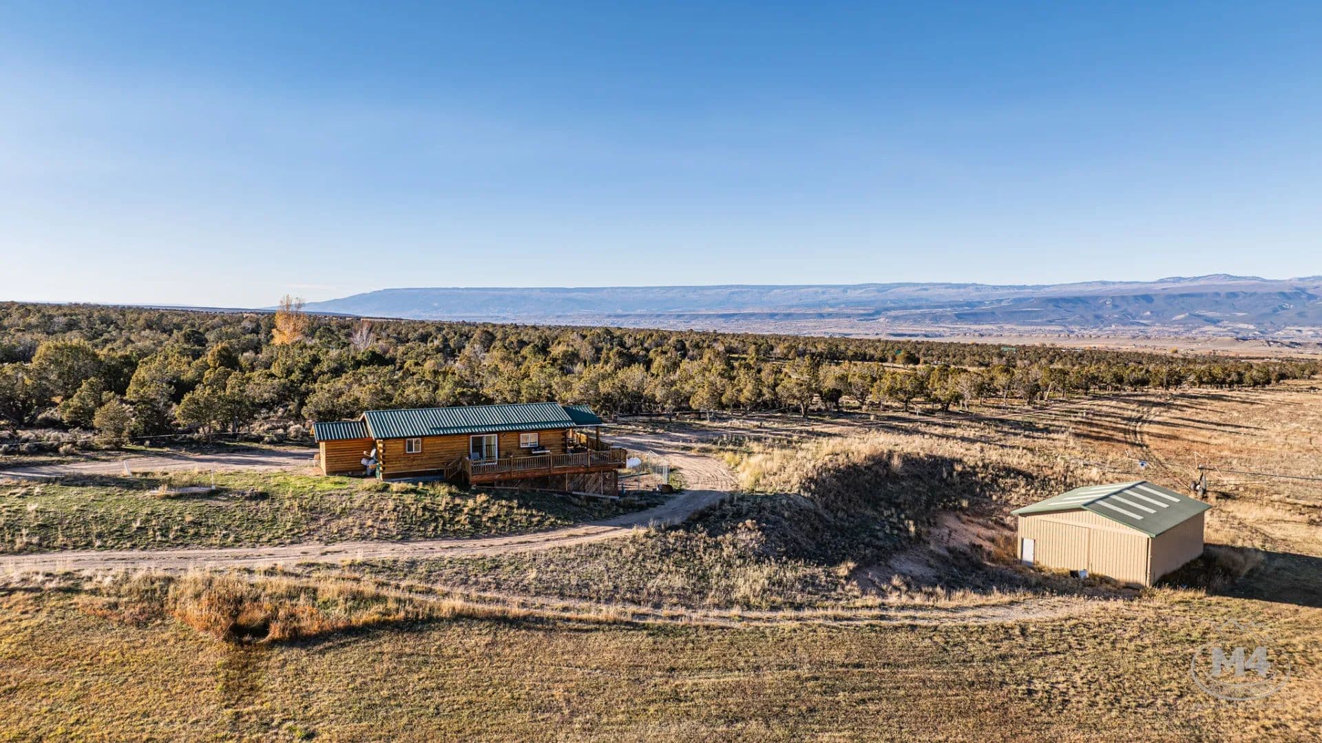 Nestled just outside the quiet town of Crawford, Colorado, this 100±-acre farm offers sweeping mountain views, productive ground, and abundant wildlife. The property is anchored by a warm and inviting 2-bed, 2-bath log cabin with a wraparound deck on two sides, an ideal place to relax and take in the panoramic views of the West Elk Mountains and Lands End. A well-kept shop sits nearby, and both structures overlook the irrigated fields for a true country-living feel.