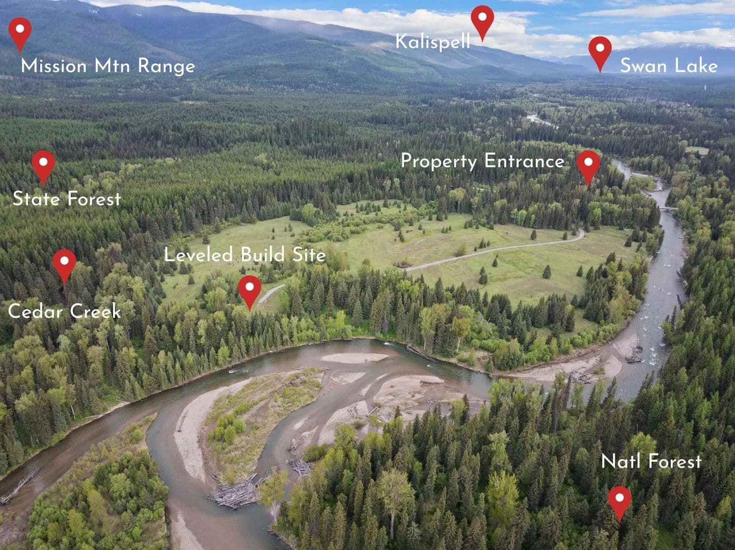 Discover an extraordinary property in the heart of Montana’s Swan Valley, just 30 minutes south of vibrant Bigfork and under 15 minutes from serene Swan Lake. This wonderful property offers a rare combination of unmatched privacy, pristine waters, open meadows, and direct access to hundreds of acres of State and Natl Forest land. Immerse yourself in nature with over half a mile of the Swan River and more than 2,000 feet of Cedar Creek running through the property, it’s a true outdoorsman’s paradise, perfect for fishing, wildlife watching, and exploring Montana’s wild landscape. A newly built road winds into the property, where the primary home site has been leveled and positioned near the river to take in the natural sights and sounds. It’s the ideal location for a private estate, unburdened by covenants or zoning restrictions, this property is a blank canvas for your Montana vision. Listen to the river flowing from the build site, watch deer and elk herds bed down through the open meadows, while the birdsongs slightly echo throughout the day. Watch the Swan and Mission Mountains come alive with unforgettable sunrises and sunsets, capturing the essence of Big Sky Country.