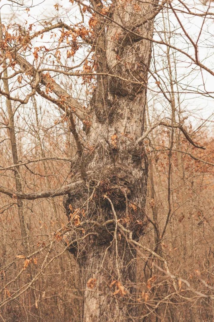 another old food plot. There is an old shooting house platform there, showing the history of the farm. With the young timber, it wouldn’t take much effort to combine these two openings for a really nice 2.5-3 acre food plot to provide food for the local deer. There were still plenty of white oak acorns and some small red oaks on the ground.