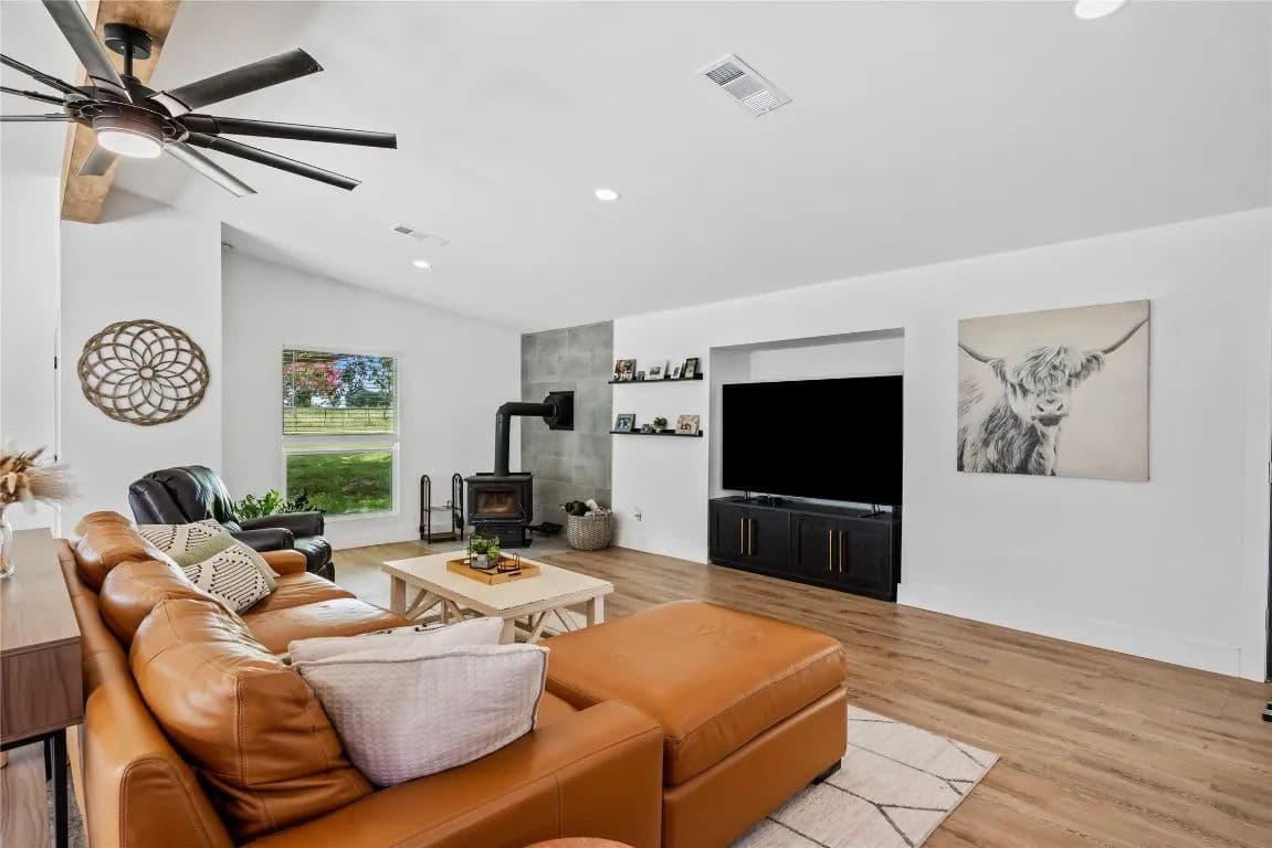 Equipped for functionality and future use, the property includes a large barn, a 3-stall barn, and a storage building—ideal for workshops, equipment, or potential guest or income-producing space. Also included is the 7+ acre pasture across the driveway with secondary access from SH 95—adding both convenience and investment appeal.