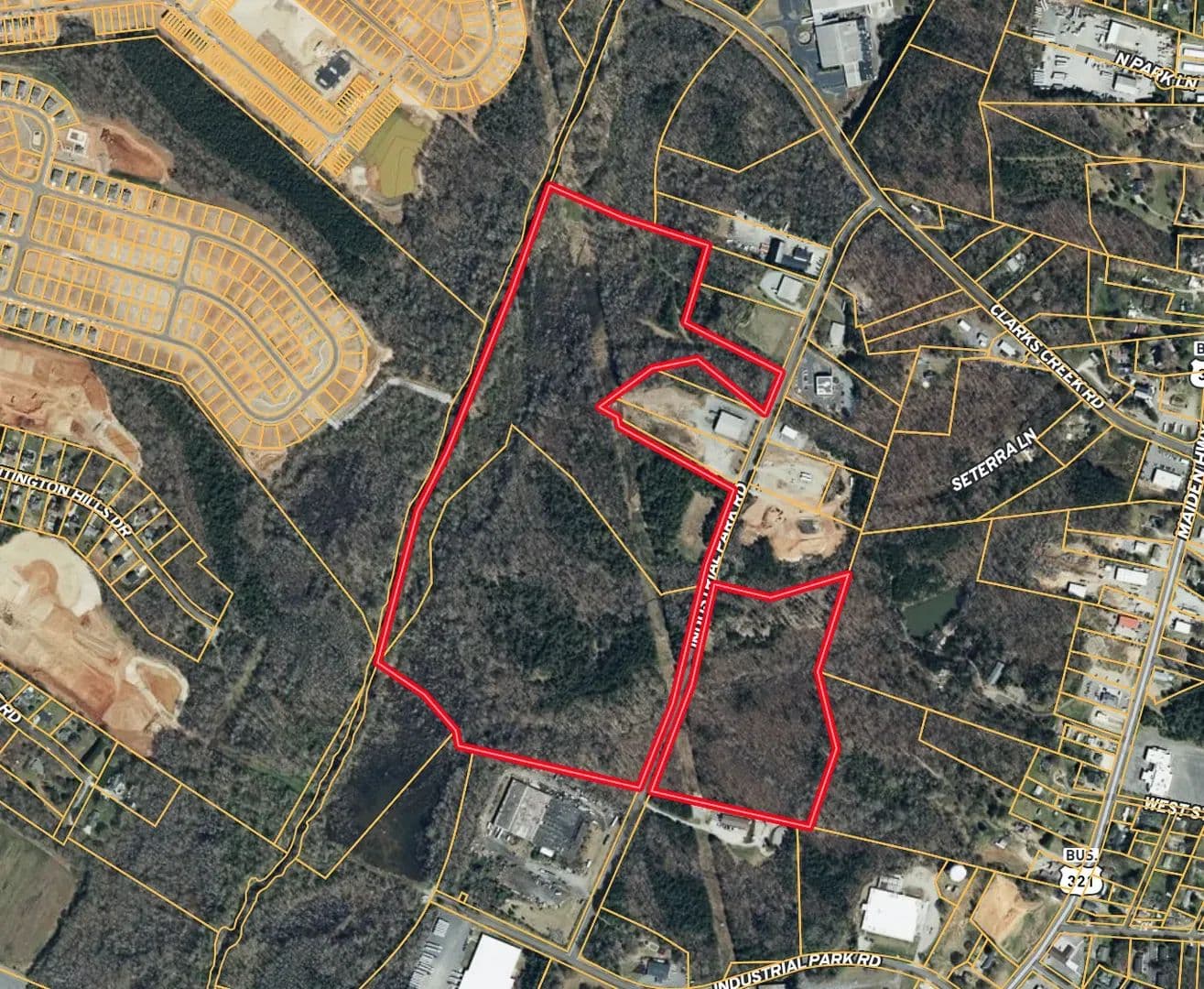 Prime commercial property located in Lincolnton, North Carolina! This Hayden Outdoors listing features two vacant parcels that total over 92 acres of prime commercial property in the Lincoln County Industrial Park! This offering has tons of road frontage, city water, city sewer and fiber optic available! For your own private showing, contact John Tate at (704) 530-6794! Land The two parcels total 92.5484 acres and are mostly covered with timber. There is a 70 plus or minus foot power line right-of-way owned by Duke Power that runs north and south across the property. Crossing the property on the northern boundary and running south along the western line just up from Clarks Creek is a city sewer line. There are multiple road beds throughout that make it easy to travel through the property. The topography is flat and has some rolling features to it as well. The elevation along Industrial Park Road is around 810 feet and down along Clarks Creek that borders the western boundary sits close to 770 feet. A small section along Clarks Creek is within the FEMA Floodplain zone.