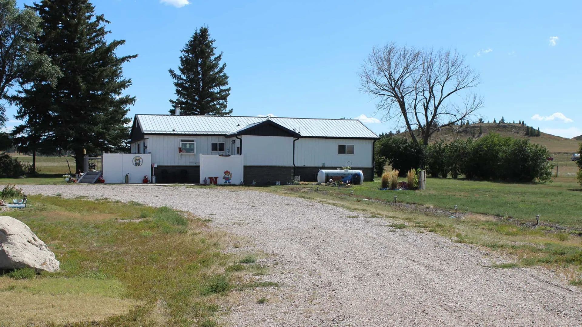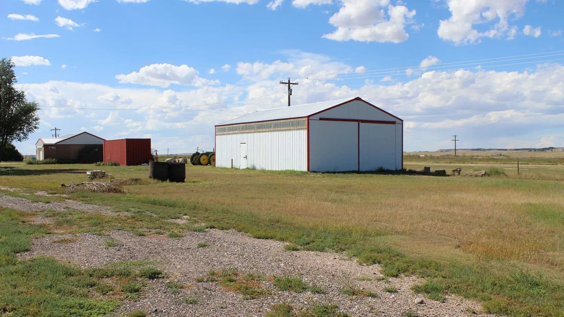 A 1,454 square foot home featuring three bedrooms and one-bath, complemented by a detached two-car garage. Additional improvements include a 46×30 Menard storage building with a dirt floor, a 51×30 truck shop with a concrete floor and drop pit, and a 24×30 concrete-floored workshop.