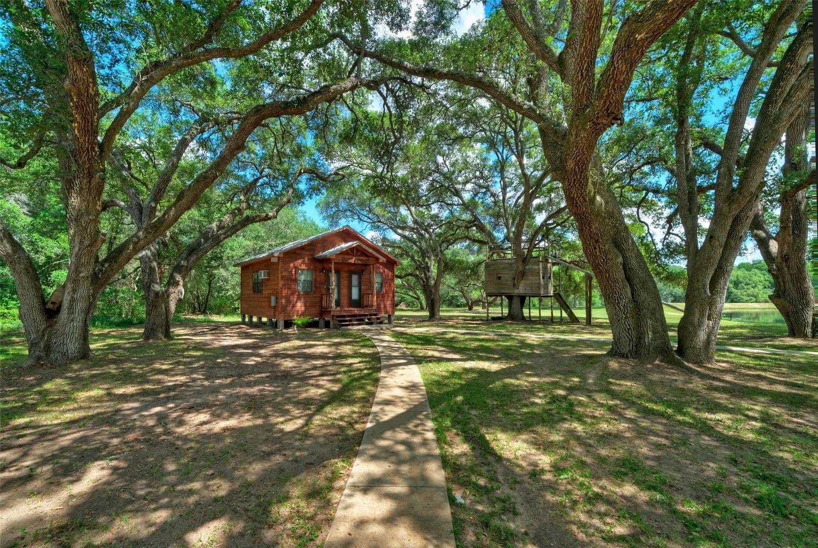 Situated on 85 acres of stunning land, this ranch is known as the Hamptons for Houston Ranch Buyers. Easily accessible from Hwy 71 or Interstate 10, and just an hour from downtown Houston and 90 minutes from Austin, it offers a peaceful escape in the heart of Austin County. The picturesque landscape features beautiful live oaks, a serene pond, and over half a mile of live-water spring fed Schweiner Creek. The property includes two charming cabins, a 1.5 acre pond with an island, outbuildings, a luxurious shooting range. Rolling pastures with split rail fencing, and an Ag exemption, this ranch is ideal for outdoor enthusiasts, hunters, ranchers, and those seeking a tranquil retreat. Surrounded by picturesque landscapes and offering a multitude of recreational activities, this property is a true haven for nature lovers. *Additional acreage available*