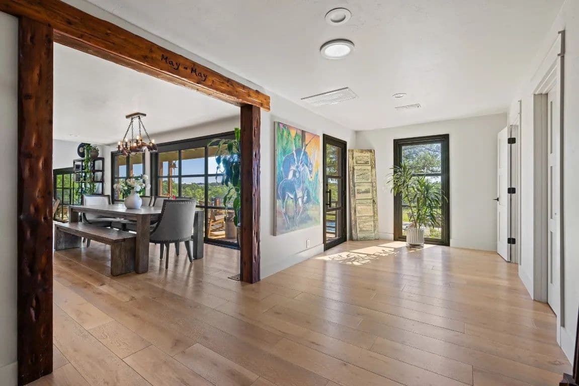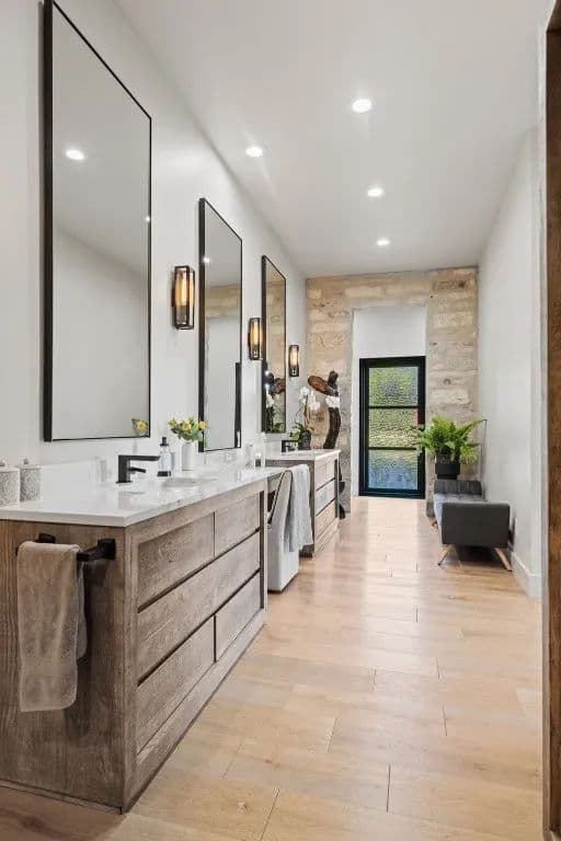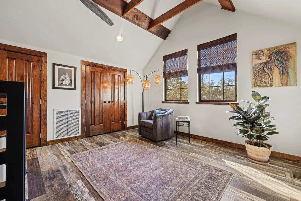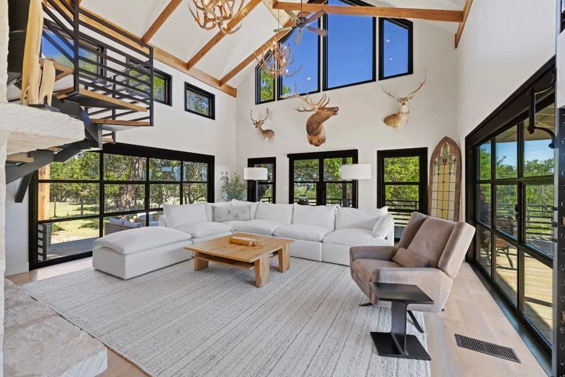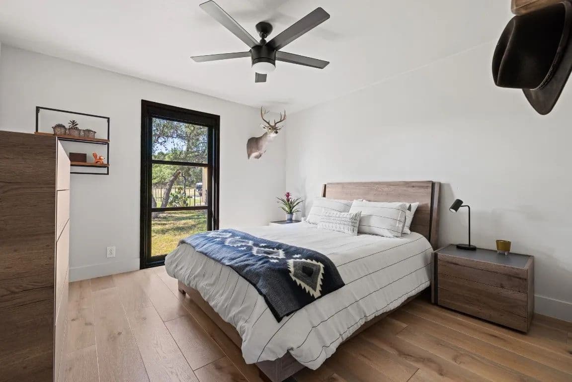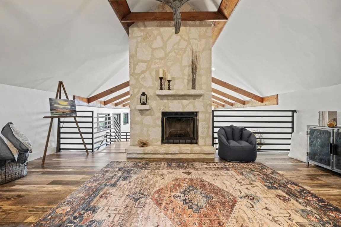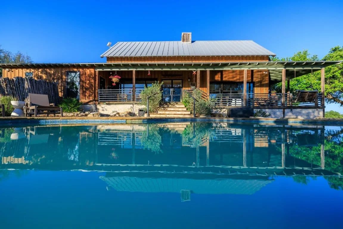 Turnkey Hill Country ranch just 15 mins to Canyon Lake, 1 hr to Austin/San Antonio. ±3,058 sqft 4-bed, 3.5-bath home with beam-accented ceilings, double-sided stone fireplace, oversized steel-framed windows/doors, wraparound porch, and pool with big views. Master suite features vaulted ceilings, fireplace, reading loft, spa-like bath with walk-in shower, stone tub, dual vanities, separate toilets, his-and-hers closets, and outdoor shower. Two guest rooms and full bath downstairs; guest suite and reading nook with fireplace upstairs. ±2,160 sqft barn with water/power, paved driveway, RV hookups. Rolling topography, mature oaks, ±2-acre pond, ±1,600’ of Carpers Creek, native/exotic game: Axis, Sika, Blackbuck, Whitetail, turkey. High-fenced, wildlife valuation in place. Main access through Mystic Shores; secondary access via recorded 40’ easement to FM 32. Great setup for homestead, STR, or weekend escape.