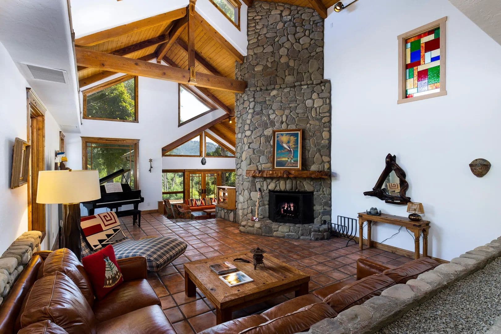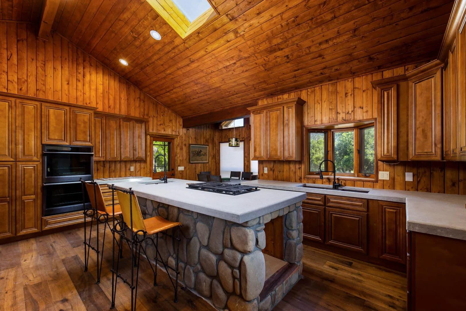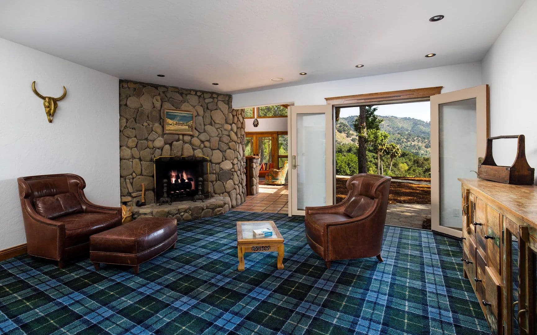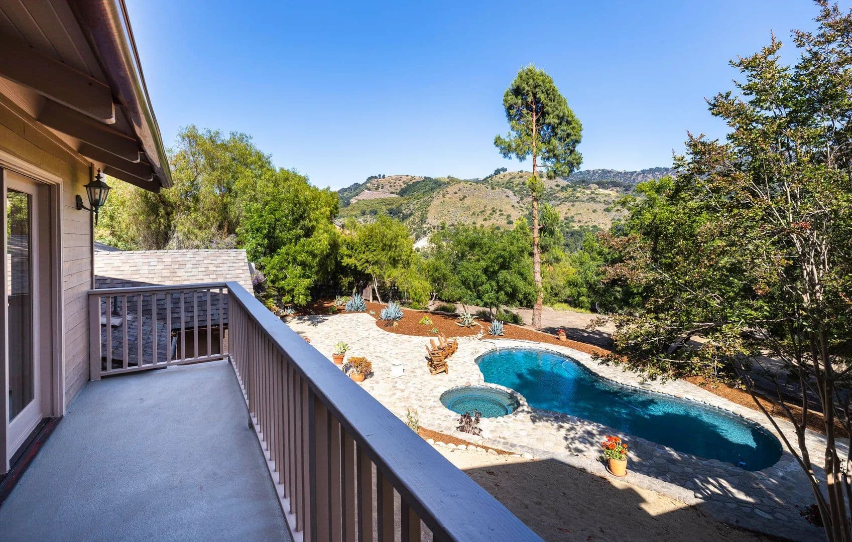 Incredible opportunity! Stunning Ojai gated estate on 13 acres with commanding views & unrivaled privacy. Designed by Mark Whitman, AIA, this 5BR 4.5BA postmodern ranch seamlessly blends nature and architecture. Enjoy the large gathering rooms, wet bar and 3 stone fireplaces. Prepare meals in the chef's kitchen or use the rustic stone bbq area after relaxing in the pool & spa.