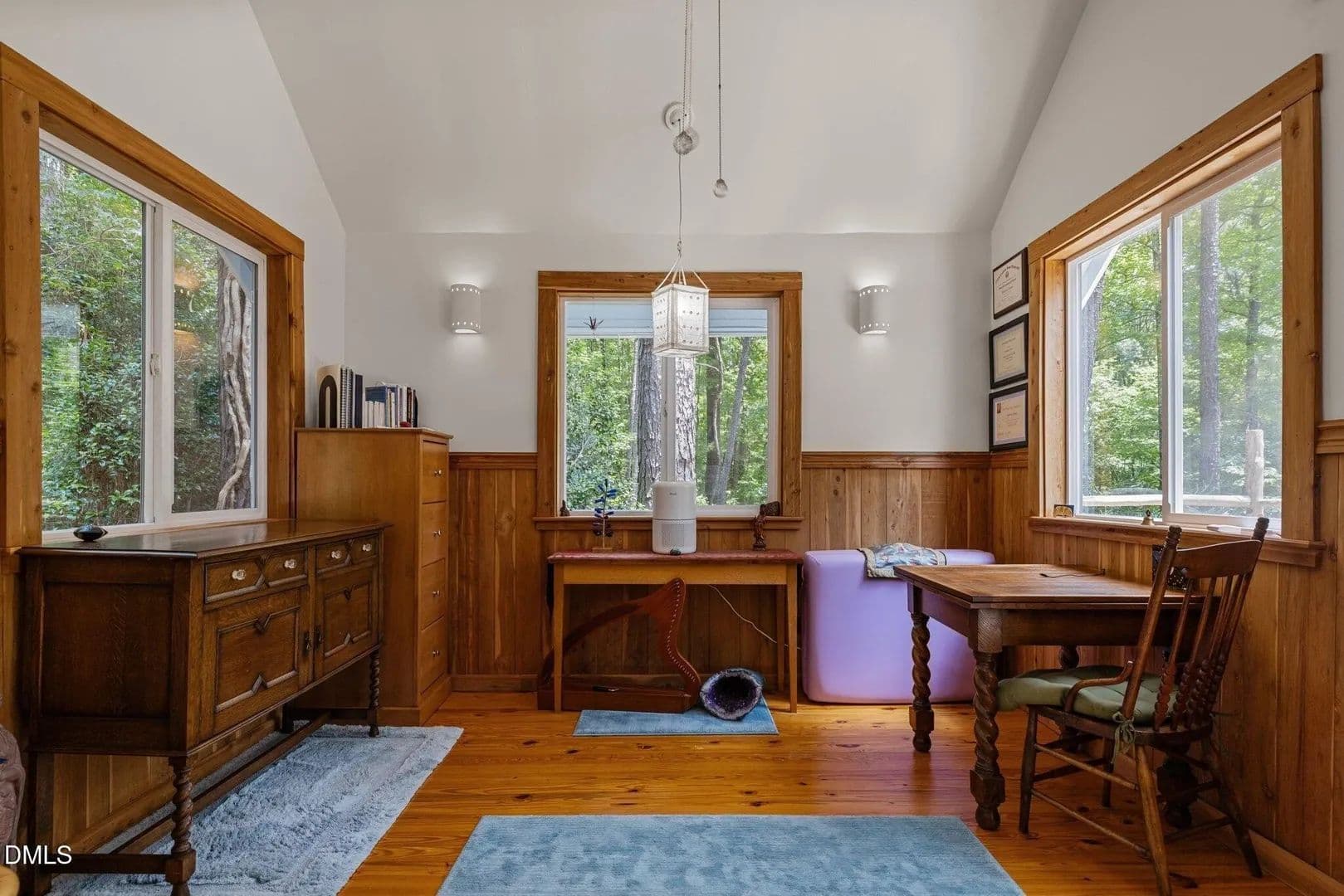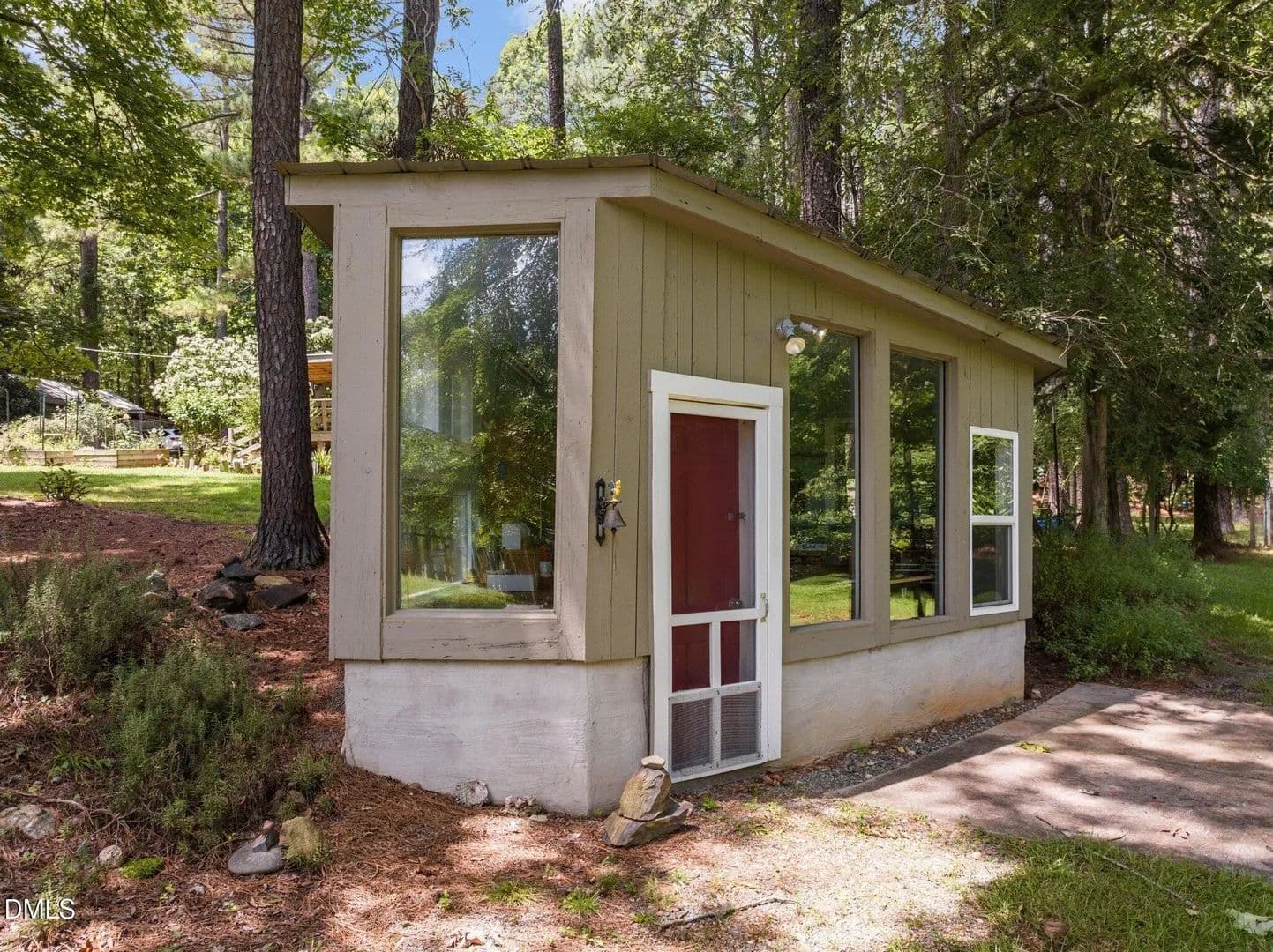 Welcome to 5.19 acres of natural beauty just one mile from Vista Point at Jordan Lake. This property is officially designated as a **Wildlife Habitat Sanctuary**, offering a rare opportunity to own land that blends ecological stewardship with everyday comfort. Framed by mature trees, providing shade, privacy, and a serene natural setting the property also entails Native landscaping, designed by a landscape architect to support local wildlife, with diverse plantings that attract birds, butterflies, and pollinators. Fruit-bearing abundance: Peach, plum, apple, jujube, persimmon, and 16 fig trees enrich the land with seasonal harvests. In addition, a tranquil pond adds charm while serving as a vital resource for wildlife. Complementing the land is a 2-bedroom, 1-bath manufactured home and a 192 sq. ft. enclosed office with handicap accessibility, power, and natural light-ideal for work, creativity, or guest use. This property offers more than acreage-it's a sanctuary where nature thrives and modern conveniences support your vision. Whether you're seeking land for recreation, homesteading, or a private retreat, this parcel provides the perfect foundation.
