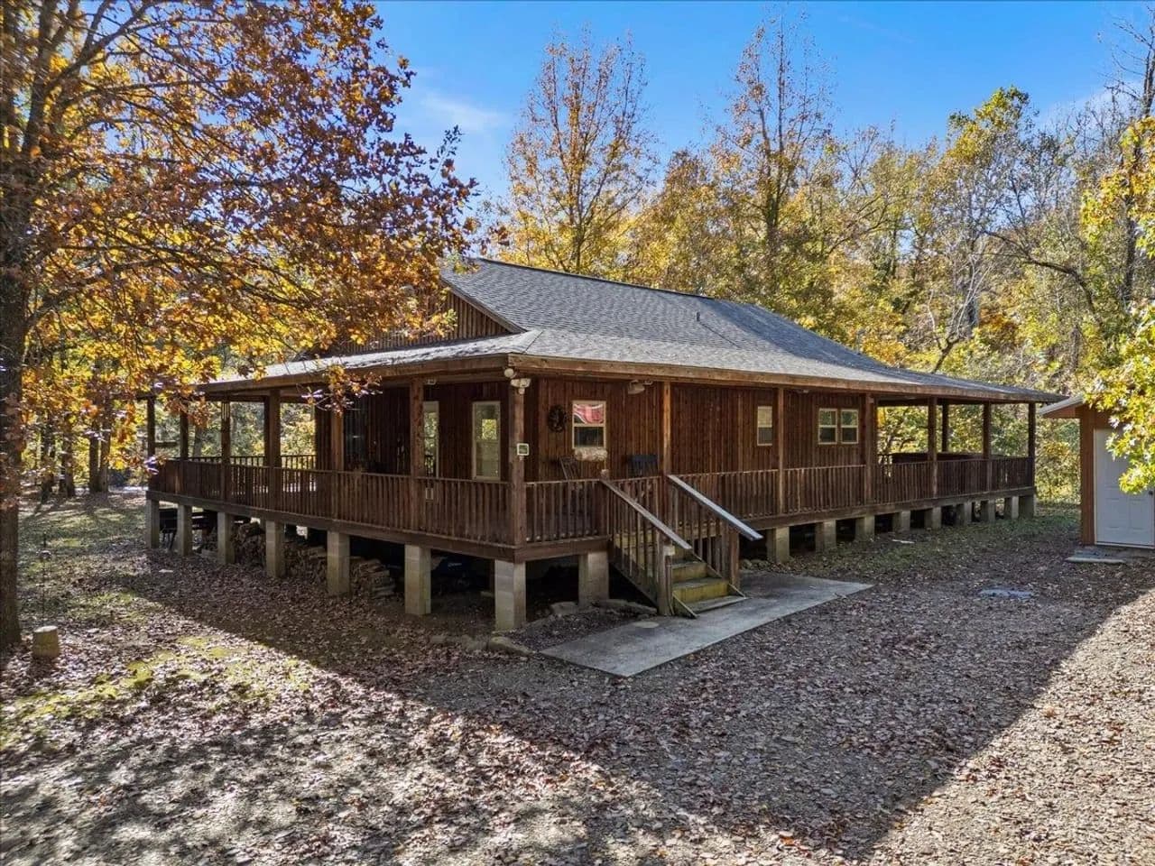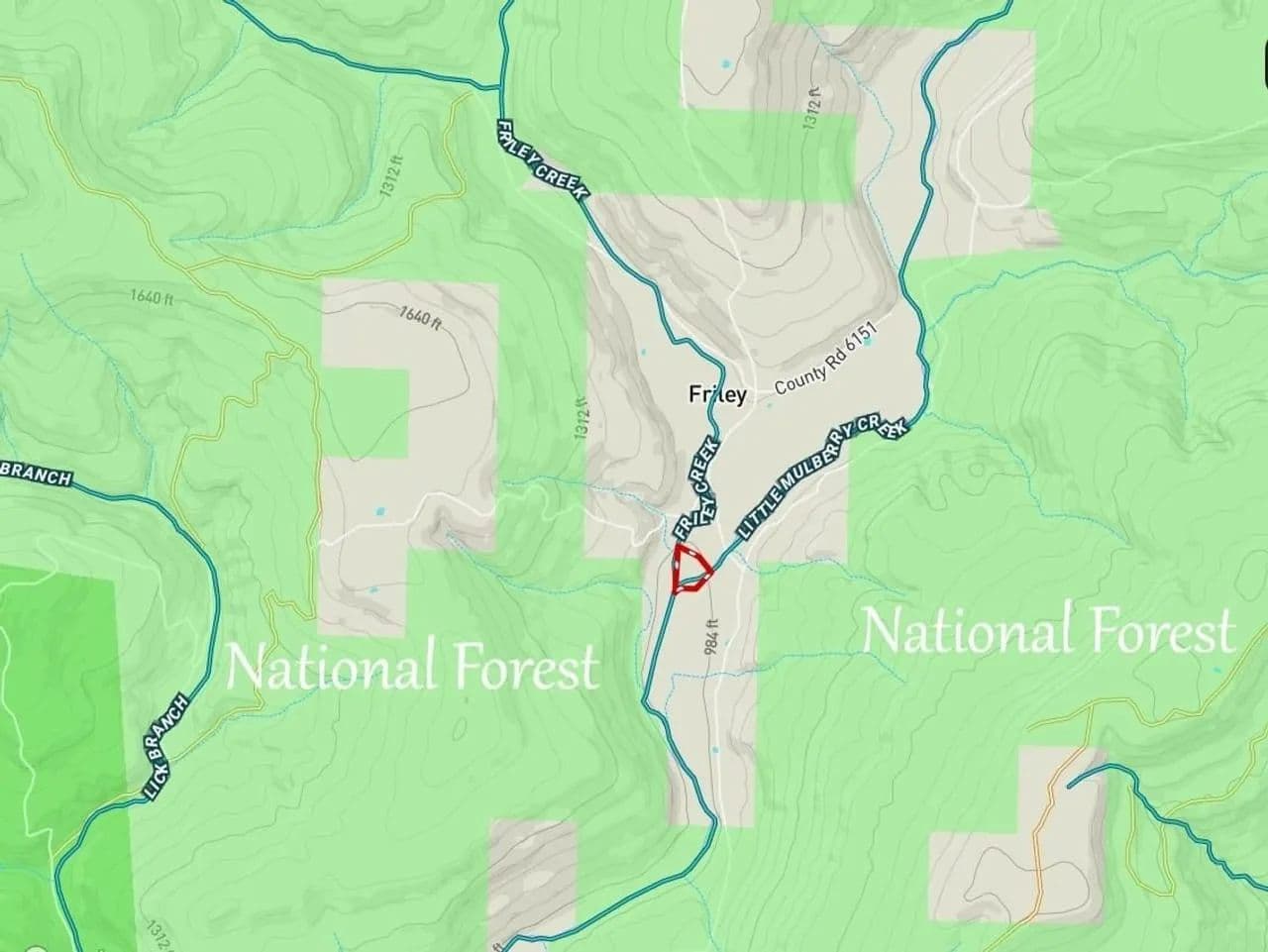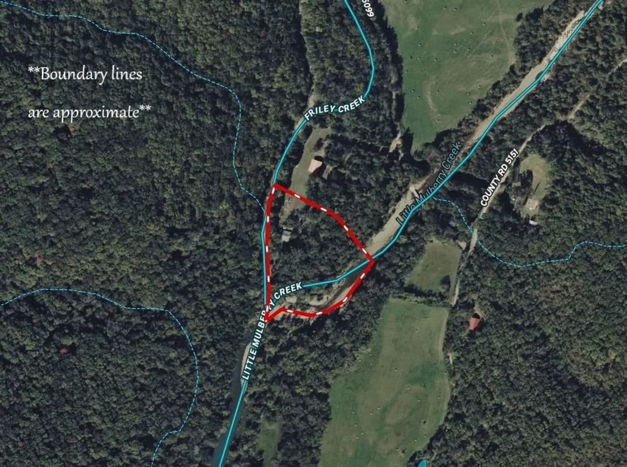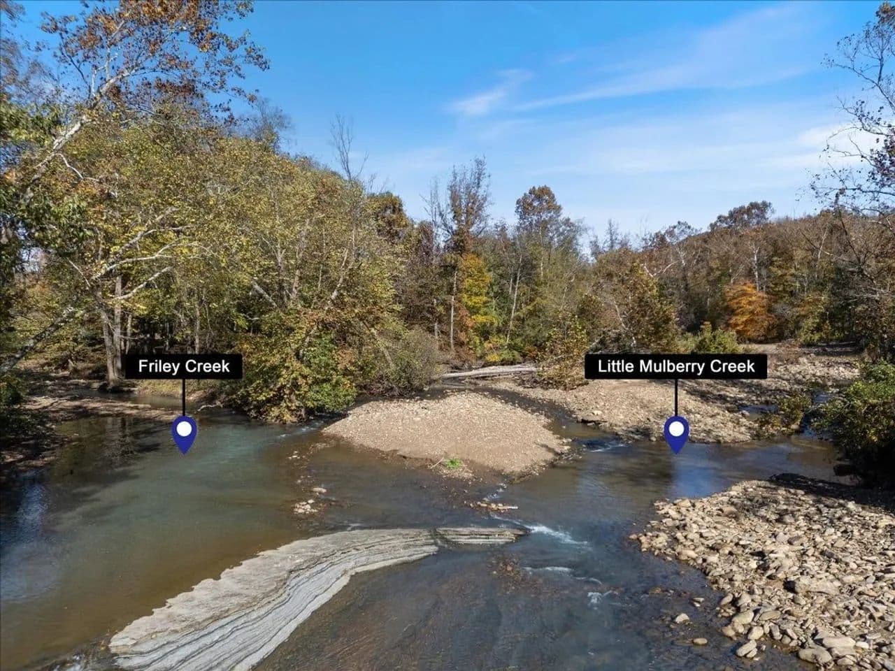 Exceptional Ozark retreat in the heart of the Little Mulberry Creek Valley, just 5 miles north of Hwy 215. This rare opportunity offers 670 ft of Little Mulberry Creek frontage and 650 ft of Friley Creek frontage. Just over 100 yards from their confluence sits a beautiful cabin with over 1700 sq ft of covered porch space, partially enclosed to ensure you can take in the beauty of the surrouding landscape year round. Open kitchen and living area with lots of windows for awesome lighting and gorgeous views. It's hard to describe this peaceful setting until you experience it for yourself. Gated entrance for complete seclusion and privacy. Well, electric and fiber on site. Roughly 5.5 acres with additional acreage available. National forest in close proximity in every direction. One of the most scenic and secluded valleys in the Ozarks.
