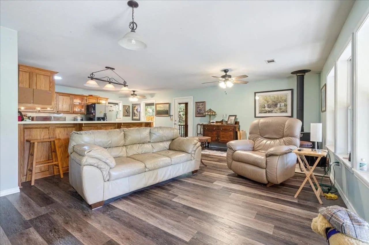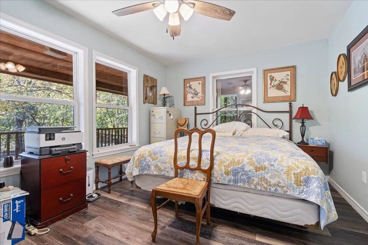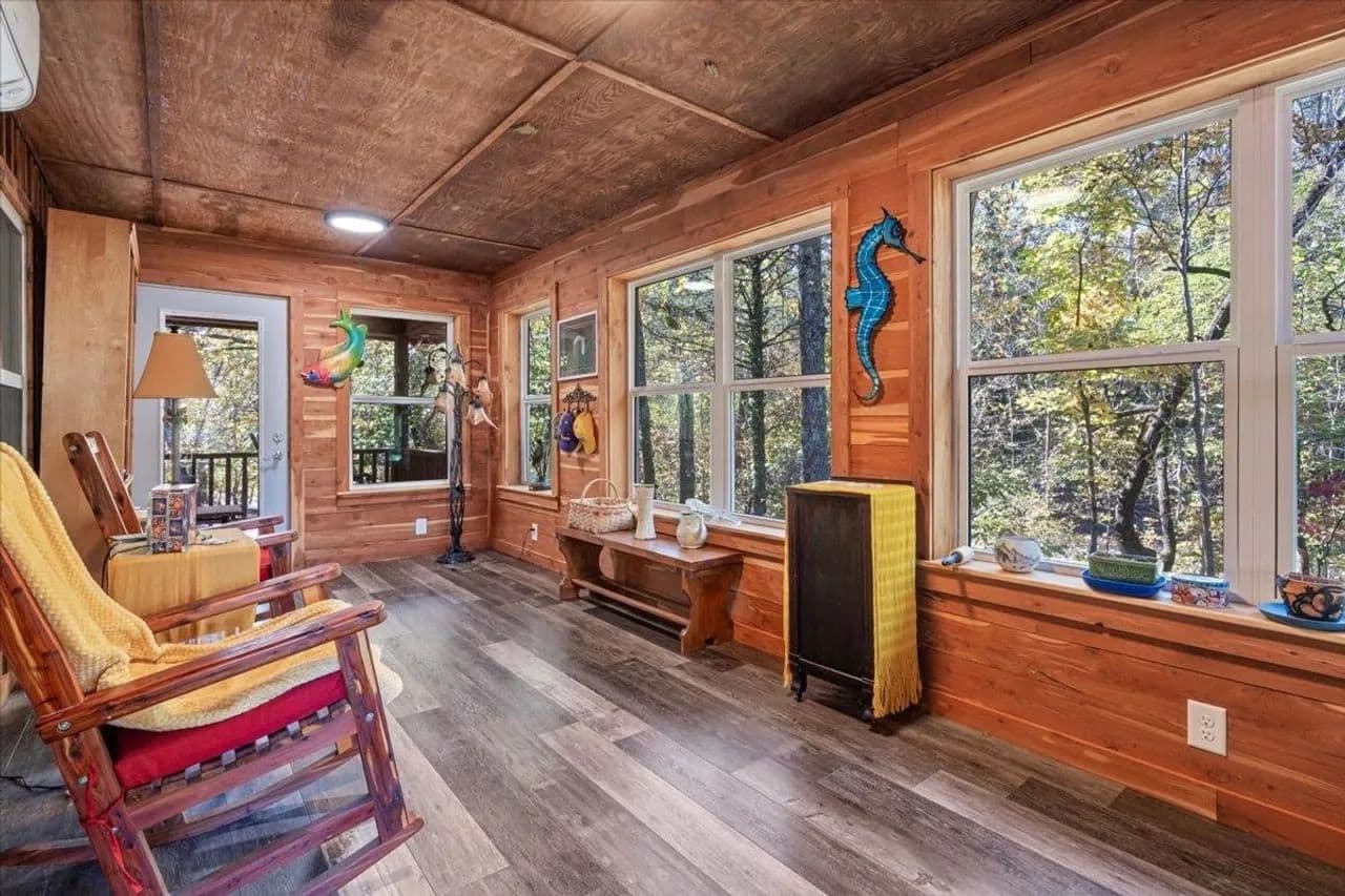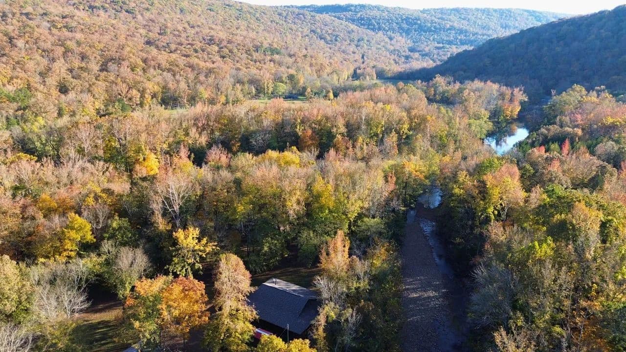Exceptional Ozark retreat in the heart of the Little Mulberry Creek Valley, just 5 miles north of Hwy 215. This rare opportunity offers 670 ft of Little Mulberry Creek frontage and 650 ft of Friley Creek frontage. Just over 100 yards from their confluence sits a beautiful cabin with over 1700 sq ft of covered porch space, partially enclosed to ensure you can take in the beauty of the surrouding landscape year round. Open kitchen and living area with lots of windows for awesome lighting and gorgeous views. It's hard to describe this peaceful setting until you experience it for yourself. Gated entrance for complete seclusion and privacy. Well, electric and fiber on site. Roughly 5.5 acres with additional acreage available. National forest in close proximity in every direction. One of the most scenic and secluded valleys in the Ozarks.