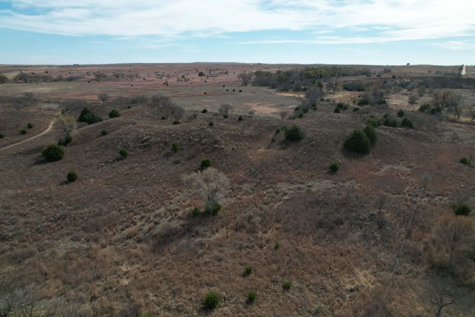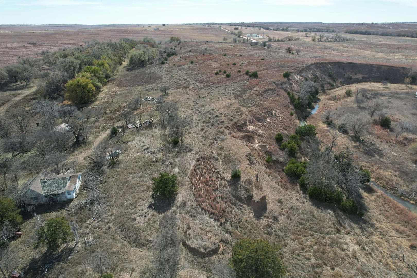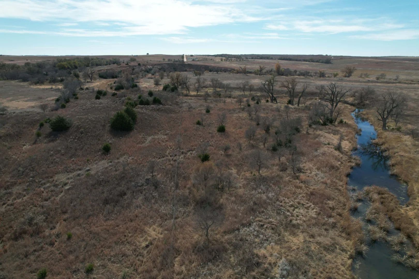 The property boasts approximately three-quarters of a mile of Sweetwater Creek flowing through it, featuring a strong water presence and three to four sizable water holes—ideal for wildlife, recreation, or future enhancements.