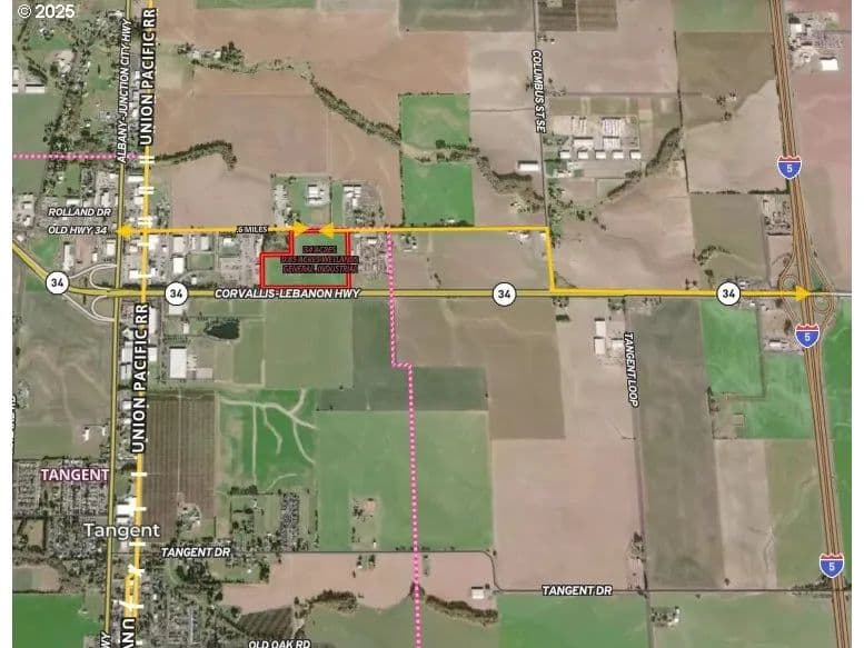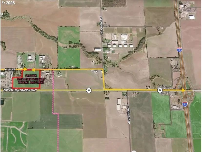 Prime General Industrial (GI) zoned land on the Highway 34 in Tangent, OR! Accessed on Old Hwy 34, this property offers excellent access with existing traffic lights while benefiting from high Hwy 34 traffic counts between Corvallis and I-5. Ideal for manufacturing, warehousing, processing, truck terminals, and more. Owner/caretaker dwelling allowed. 10,000 ft.² minimum lot size