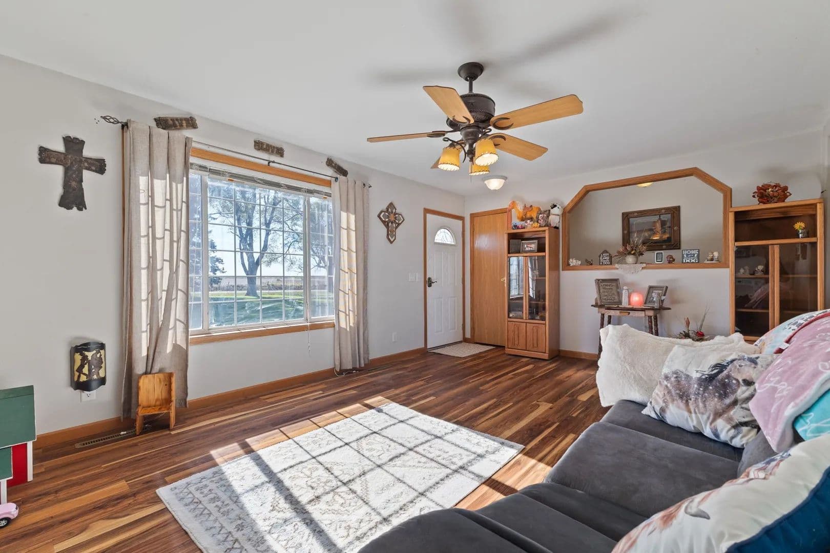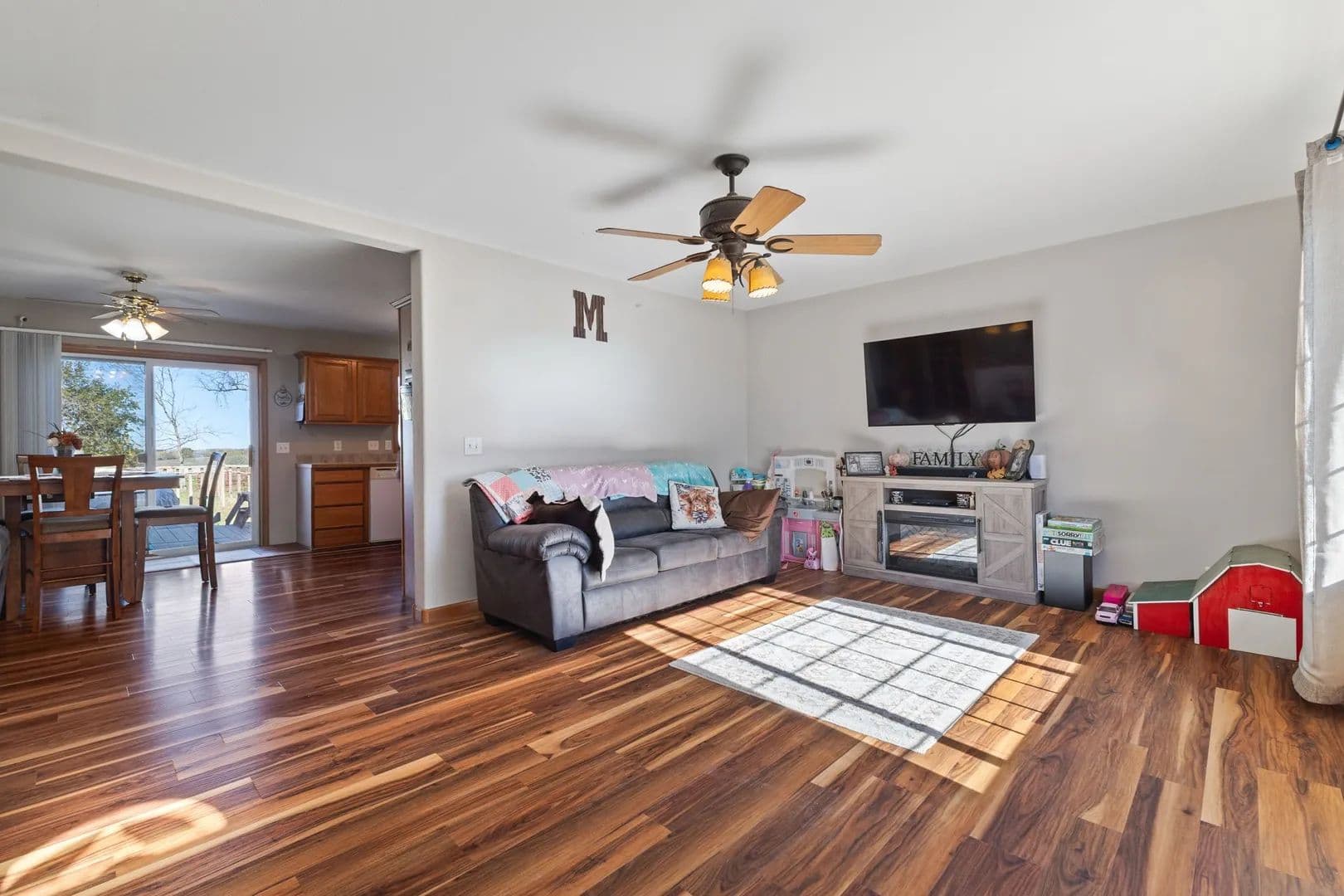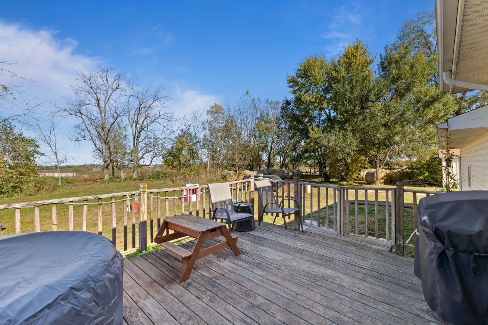 Enjoy peaceful country living just 8 miles south of Knoxville on this beautiful 13 acre property! This 4 bedroom home offers comfortable living. The spacious primary suite features a walk-in closet & a ¾ bath. Convenient main-floor laundry and durable LVP flooring add modern appeal and easy maintenance. Step out onto the back deck and take in the scenic views of mature trees and the fenced pasture. The lower level offers plenty of space for a 2nd living area, 2 bedrooms & a half bath. An attached insulated 2-car garage & a detached 1-car garage provide ample parking & storage. Outdoors, you?ll find a 60x90 barn with 100amp service, garage doors on each end, lighting, & RV hookup. The land is set up for livestock, with fencing for cattle and horses, two enclosed lots, & automatic waterers. This acreage is ideal for anyone seeking a balance of country charm & modern comfort, ready for your family, hobbies, and livestock!