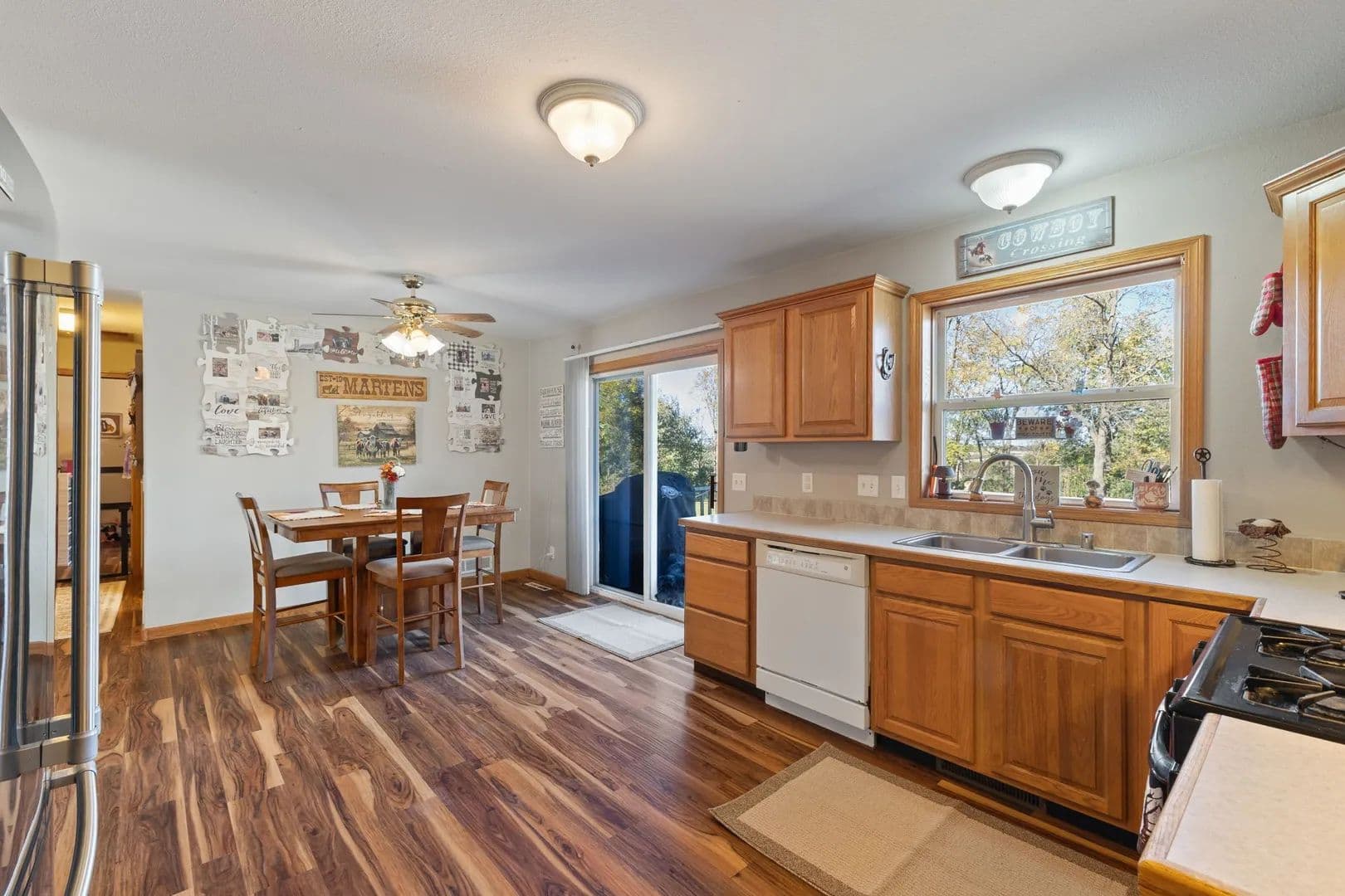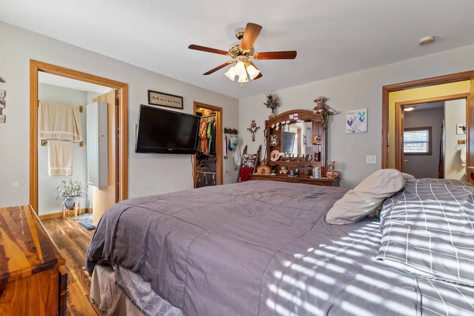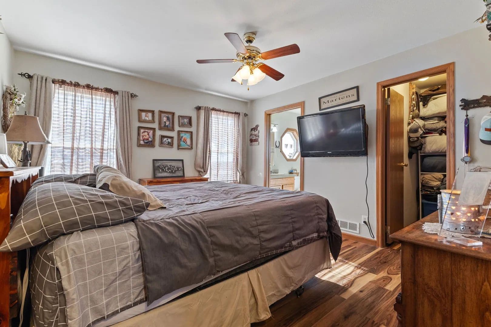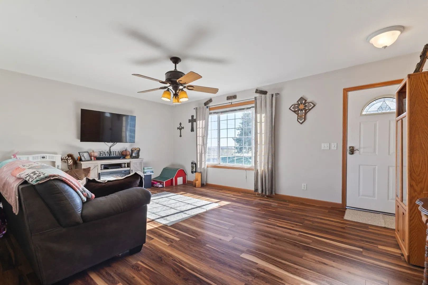 Enjoy peaceful country living just 8 miles south of Knoxville on this beautiful 13 acre property! This 4 bedroom home offers comfortable living. The spacious primary suite features a walk-in closet & a ¾ bath. Convenient main-floor laundry and durable LVP flooring add modern appeal and easy maintenance. Step out onto the back deck and take in the scenic views of mature trees and the fenced pasture. The lower level offers plenty of space for a 2nd living area, 2 bedrooms & a half bath. An attached insulated 2-car garage & a detached 1-car garage provide ample parking & storage. Outdoors, you?ll find a 60x90 barn with 100amp service, garage doors on each end, lighting, & RV hookup. The land is set up for livestock, with fencing for cattle and horses, two enclosed lots, & automatic waterers. This acreage is ideal for anyone seeking a balance of country charm & modern comfort, ready for your family, hobbies, and livestock!
