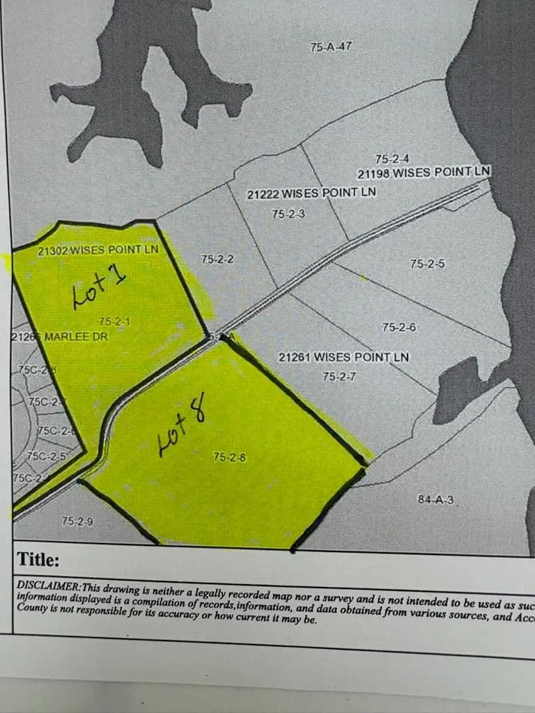 Would you like to have your home built in a quiet waterfront community just 5 min. from the quaint town of Onancock? All Owners have deeded access to the community dock with 2 boat lifts & their own boat slip located on Chesconessex creek 3' water depth MLW minutes to the Chesapeake Bay. Lot 1 offers 9.69Acres with an observation deck, pilings & septic already installed for a 3 bedroom home. Lot 8 on 12.75Ac located directly across from lot 1 has a conservancy restriction so there is minimal real estate tax. It's so very peaceful & full of nature for your exploration. You'll own all 22+ acres with both lots for one price..don't let this slip away. Liz Walters, 757-710-2114, lizwaltersrealtor@gmail.com