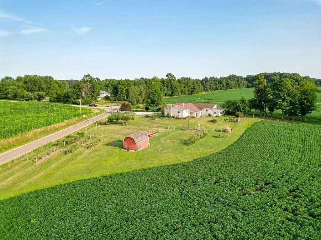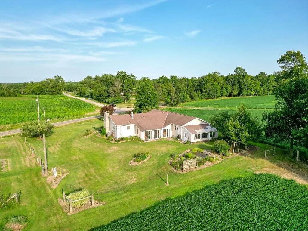 51 acres and clean 3 bedroom ranch home with attached 2 car garage, with additional woodshop attached, and greenhouse attached in the rear. The full basement has some finished space as well, and 2 convenient access points, one from the main home, and one from the woodshop. Enjoy the fruits of your labor sitting in the 3 seasons room overlooking the scenic back yard! The land is a great mix of woods and tillable/pasture fields with several streams near the wood lines. Approximately 22 acres tillable/pasture, and the remainder in woods. Barns, fence, and pasture on the north side of property have great potential for a variety of uses. Approximately 740 ft of road frontage makes this a great investment in your future!