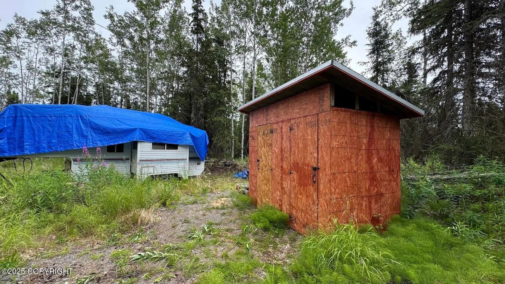 80 acres with driveway, gravel pad, 5th-wheel trailer, Conex, outhouse with shower located between Soldotna and Kenai. The property is inside the city limits of Kenai. Good start to a road to the middle of the first 40 acre parcel for a future home site or to subdivide into multiple parcels. Actual acreage is less to due to 30 ft Right of Way along Lentfer Ave. See the plat
