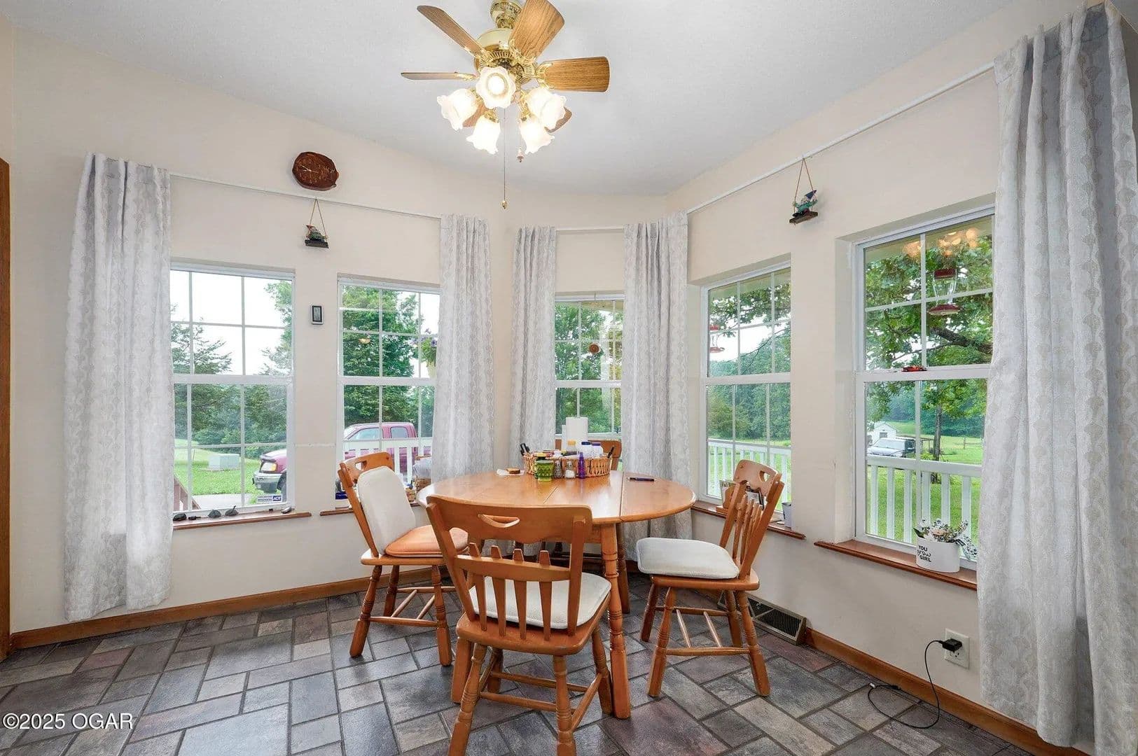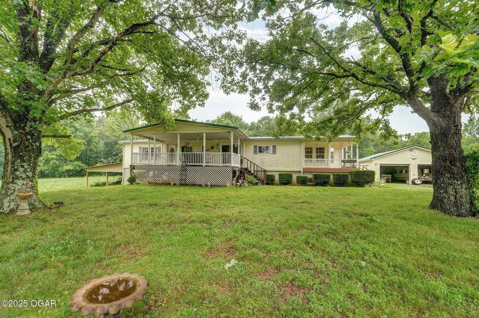 Properties like this don't come available often! Welcome to a truly exceptional opportunity- 240 acres +/- of beautiful rolling hills offering the ideal mixture of nature and practical functionality. Primarily wooded, the mature forests offer great opportunity for hunting enthusiasts or those searching for a peaceful and private retreat. Deer, turkeys, and many other wildlife are often seen across the land. The land itself is a nature lover's dream- perfect for hiking and exploring! There are cleared pastures for livestock, horses, agricultural use, or hayfields! Multiple ponds on the property, as well as a wet weather creek that flows through. Additionally, this stunning property offers a nearly 3,900 sq ft home, with 5 bedrooms, 3.5 baths, full walkout basement, and breathtaking views from the multiple covered outdoor porches. Detached 2 car garage, storage cabin, garden shed, and barn offer ample storage! There are multiple possible building sites for anyone looking to build their dream home as well!Whether you're searching for a private family estate, a hunting lodge, or a working homestead, this one-of-a-kind property offers a rare combination of seclusion, natural beauty, and modern living—all just a short drive to the lake or to metro cities: Branson & Springfield!