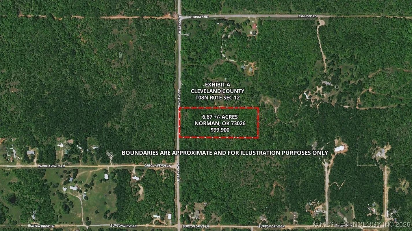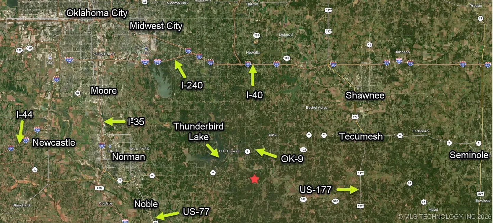 EXPLORE THE VERSATILITY OF THIS EXCEPTIONAL 6.67 +/- ACRES OF VACANT LAND IN THE PICTURESQUE NORMAN COUNTRYSIDE—ONLY 14 MILES FROM I-40 AND 18 MILES FROM I-35! Conveniently located just outside city limits on a paved road for easy access, this amazing 6.67 +/- acre property features a good mix of heavily treed landscape with a few strategically cleared spaces, making it ideal for a multitude of purposes including building your custom dream home, using it as a recreational retreat, or enjoying nature. Outdoor enthusiasts will love being just 5 miles from Lake Thunderbird, known for its vibrant recreational opportunities. Lake Thunderbird State Park, located 17 miles away, boasts marinas, boat ramps, swimming beaches, camping facilities, and trails for hiking, biking, and horseback riding. Activities like archery, hunting, and watersports make it a hub for adventure. Other nearby natural highlights include the Canadian River (18 miles) and Lexington State Wildlife Management Area (10 miles), offering unmatched opportunities for exploration. For commuters or city seekers, the property is incredibly well-connected: 6 miles from OK-9, 14 miles from I-40, and 18 miles from I-35, with Downtown Norman and the University of Oklahoma just 16 miles away. Oklahoma City is an easy 28-mile drive, offering all the modern conveniences and amenities while maintaining the peace of countryside living. With close proximity to world-class outdoor activities and urban convenience, this property is perfect for your dream home, a private retreat, or an investment in future possibilities. Don’t miss the chance to own such a wonderful property! Schedule a private showing today.