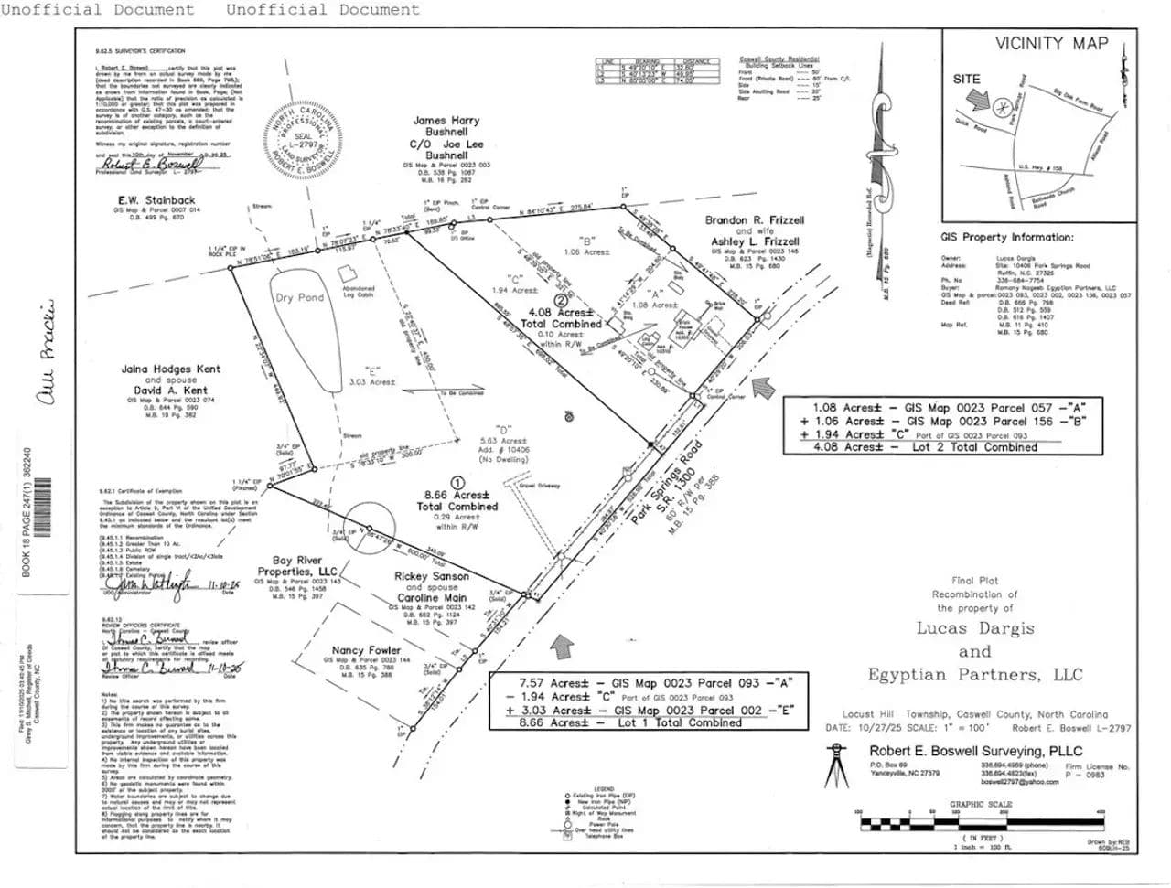 - The property has a recorded survey which can be found in the "Property Documents" tab on this listing.
