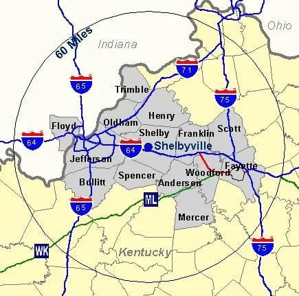23.98 undeveloped ACRES in prime location - Situated on the southeast quadrant of Exit 35 of Interstate 64 in Shelby County with good visibility from the interstate. This is a high traffic area & offers one of the highest 2 mile radius roof counts in Shelby County. This is a perfect site for a large retailer, motels, shopping center, restaurants, etc. With easy access to the site just off the interstate ramps make this an ideal commercial site. Located 25 miles from downtown Louisville & just 15 minutes east of I-265 (Gene Snyder). Future improvements to I-64 include widening to 3 lanes in each direction from I-265 to Exit 35. Distilleries nearby and the only Outlet Mall in KY is located just 2 exits away. Owner/Agent