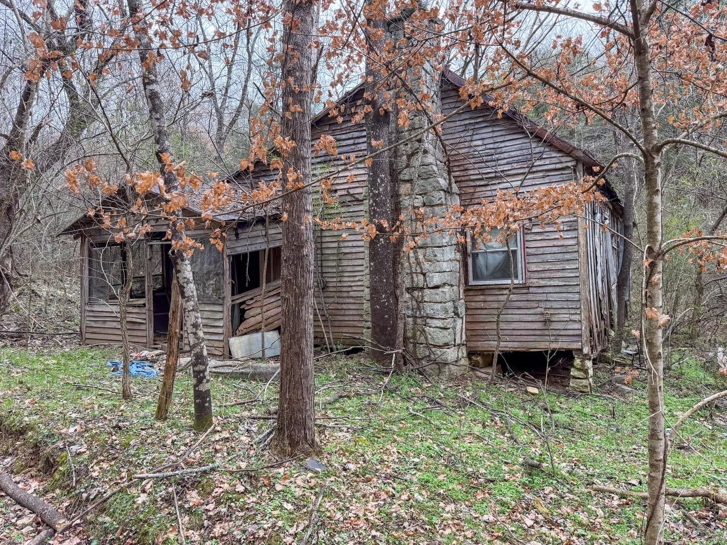 Near the center of the tract is a large, flat clearing with expansive long range views. This area could be an ideal location for a future homesite, cabin, or off-grid retreat, as well as camping or recreational use. Remnants of the original home and barn remain, providing a glimpse into the property's history.