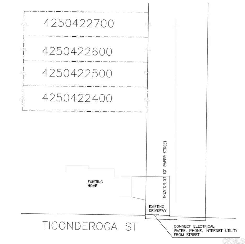 Rare Bay Park Development Opportunity – 8 Legal Lots Overlooking Mission Bay. Each listed individually. Seller prefers offers for all 4 or all 8 lots together. An extraordinary opportunity has emerged for homebuilders and real estate investors: eight legal lots in Bay Park—one of San Diego’s most coveted coastal neighborhoods—are now available for purchase. With breathtaking panoramic views of Mission Bay and the Pacific Ocean, this property is truly a once-in-a-lifetime acquisition. Property Highlights: 8 Legal Lots (24,283 SF total | approx. 3,000 SF each). Flexible Offering – Seller will consider selling all 4 lots together, another set of other 4 lots adjacent available for sale. Listed separate Preliminary Design Plans available for potential development. Most lots with water views of Mission Bay and beyond. ADU potential to maximize density and long-term value Investment Potential:This is a homebuilder’s dream. The combination of Bay Park’s quiet, established setting with stunning coastal vistas creates a rare product type: modern residences that could be pre-sold before construction is complete. Each lot is ideally sized for a luxury single-family residence with the option to add an ADU, catering to both end-users and investors seeking long-term rental income. Few opportunities remain in San Diego for infill residential development of this caliber. Investors and builders alike will recognize the scarcity and immediate value—this is one of the last remaining multi-lot development parcels with sweeping views in the city. Location Benefits Bay Park’s central position offers the best of San Diego coastal living: Minutes to Mission Bay, Pacific Beach, and La Jolla, Easy access to I-5 and I-8 freeways for seamless connectivity, Proximity to vibrant dining, shopping, and recreation hubs, A serene residential neighborhood that feels tucked away, yet is close to everything The Vision: Envision a collection of luxury coastal homes perched above Mission Bay, where residents enjoy sunset ocean views, morning walks to the beach, and quick access to San Diego’s most dynamic coastal communities. This property offers the unique chance to create a signature residential enclave that will define Bay Park living for years to come. Act Now – Opportunities Like This Don’t Last: This offering represents one of the last prime development sites in the Bay Park/Pacific Beach area with unobstructed bay and ocean views. For the forward-thinking builder or investor, the potential is nothing short of remarkable. The access is from Ticonderoga St. There will be an extended driveway to access lots from that street. Please see picture so identify what driveway will be extended. Go through that driveway to access lots. Renders and design plans showcasing potential builds are available. Buyer to verify all information and conduct due diligence before purchase. Seller open to entertaining all reasonable offers. Don’t miss this rare chance to secure a piece of Bay Park’s finest views! 8 lots available APN's 4250423100,4250423000,4250422900,4250422800,4250422400,4250422500, 4250422600,425042270 Seller financing available.