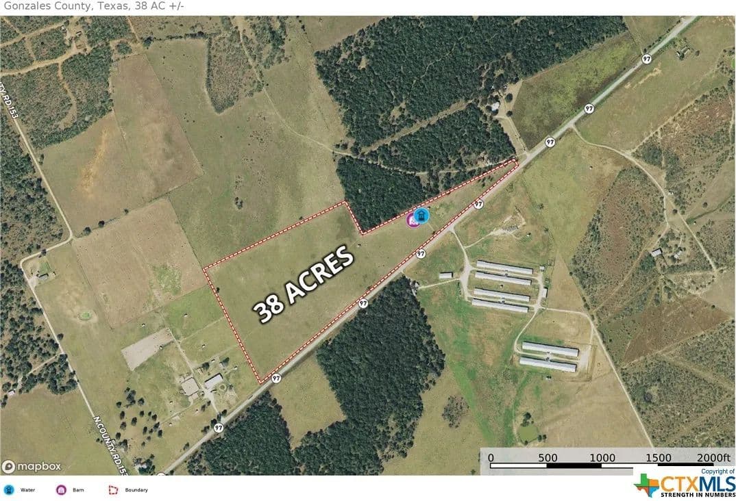 The quiet and PEACEFUL Countryside of Gonzales county awaits you! 38 acres with excellent HWY 97 Road Frontage (over 1/2 Mile) between the BEAUTIFUL and HISTORIC small towns of Gonzales and Nixon. Electricity(GVEC) and Water(Gonzales County Water Supply Corporation) ONSITE. Perfect for CUSTOM Homesite, Warehouse, Distribution Center, Parking, Storage, Business Storefront, Sales Office, Corporate Headquarters, New home Construction and MORE! 50x60 Covered Barn and Equipment Building, Multiple Hay Sheds and CURRENT AG EXEMPTION! LARGE HEB and Walmart are only minutes away. 1 Hr to San Antonio, 1.5Hr to Austin and 2.5 Hrs to Houston. This property is uniquely centered 1.5 HRS from the SPARKLING waters of the TEXAS GULF COAST and World-Class Fishing with TROPHY Whitetail deer hunting only a short drive down to South Central TEXAS. Reference MLS numbers 10056648 and 4102348 for individual parcels able to be purchased separately.