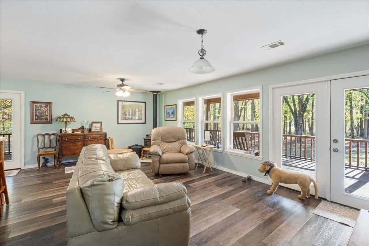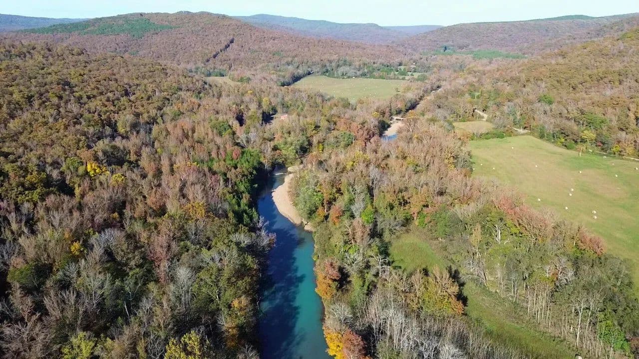 Exceptional Ozark retreat covering over 83 acres in the heart of the Little Mulberry Creek Valley, just 5 miles north of Hwy 215. This rare opportunity offers 2500 ft of Little Mulberry Creek frontage and 1700 ft of Friley Creek frontage, with their confluence only 130 yards from the cabin porch. Enjoy over 1 mile of established trails, mature timber and bottomland hardwoods. Excellent deer, turkey and bear hunting, with a strong age class in the local deer herd. Two newer cabins (1120 sq ft & 1914 sq ft) sit along Friley Creeks east bank, with another across the creek that is older but has a solid structure. A historic home from the settler days with a smokehouse adds to the beauty of this special property. Power, fiber and water on site with 4 total wells, creating the potential to expand with more waterfront cabins on numerous building sites. Adjoins Ozark National Forest to the south and west with little to no public access to the adjacent 450 acres. One of the most scenic and secluded valleys in the Ozarks.