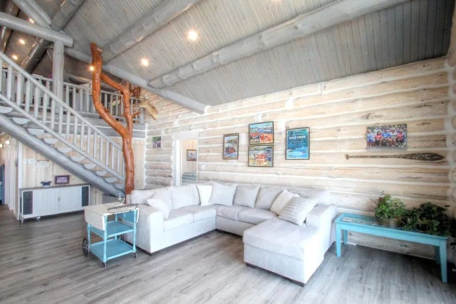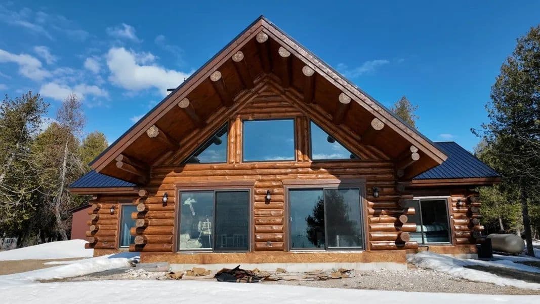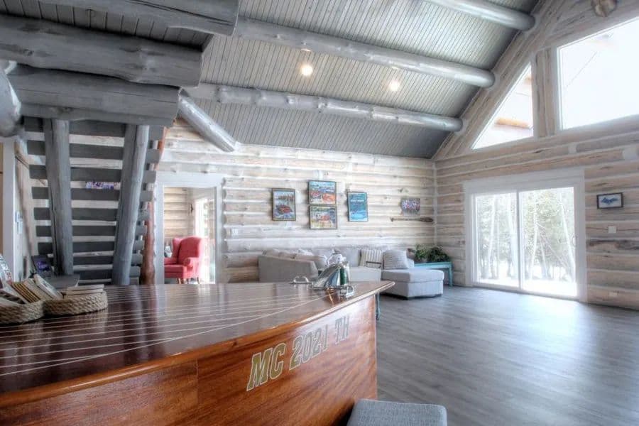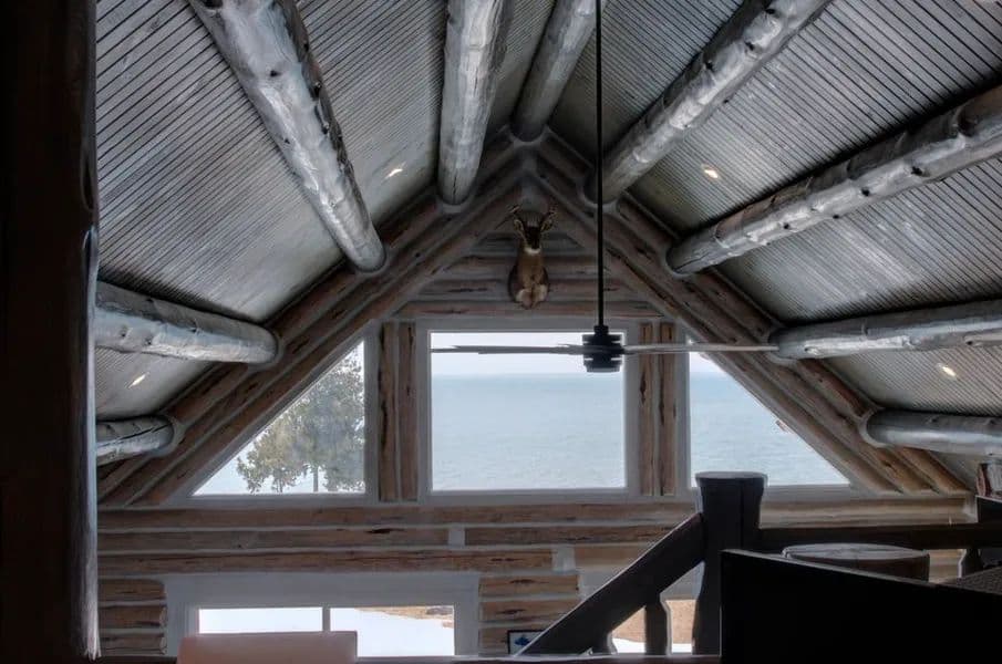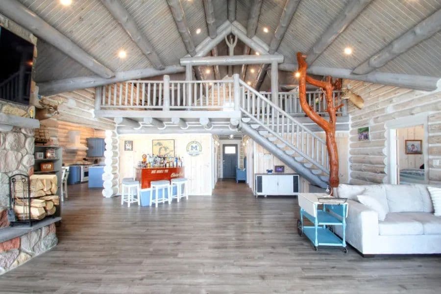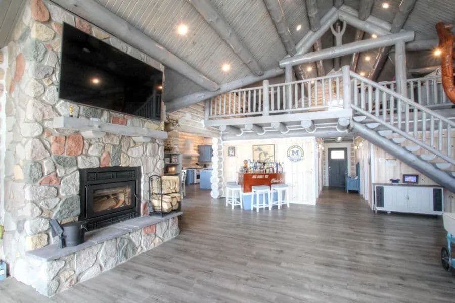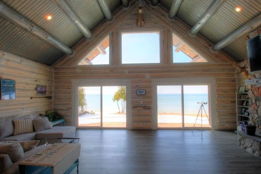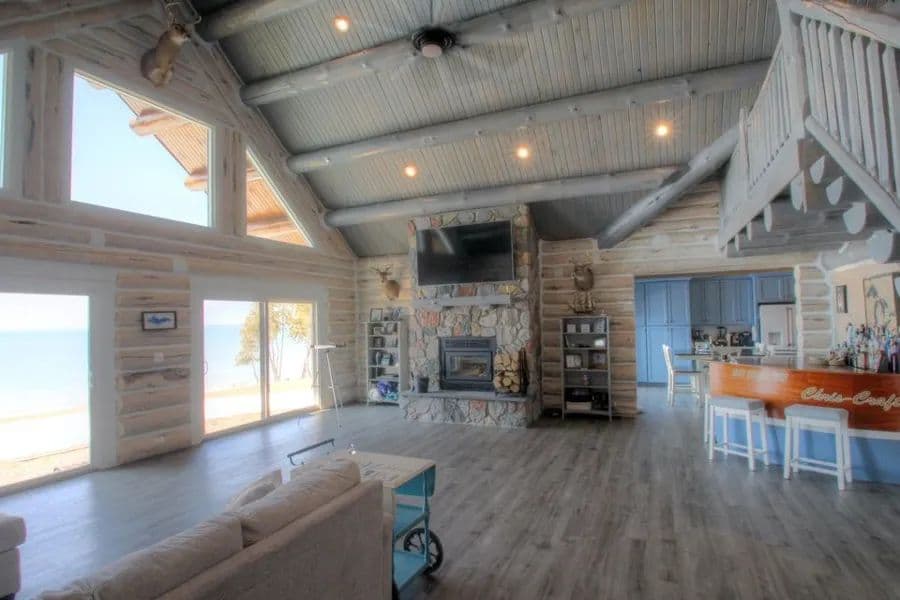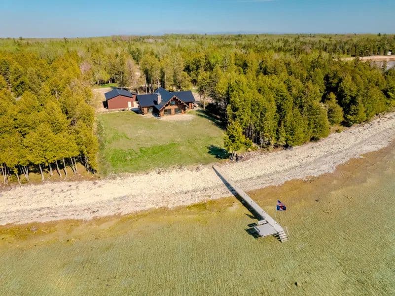 Custom Lakefront Log Home in Hessel, Michigan for Sale on 1 Acre