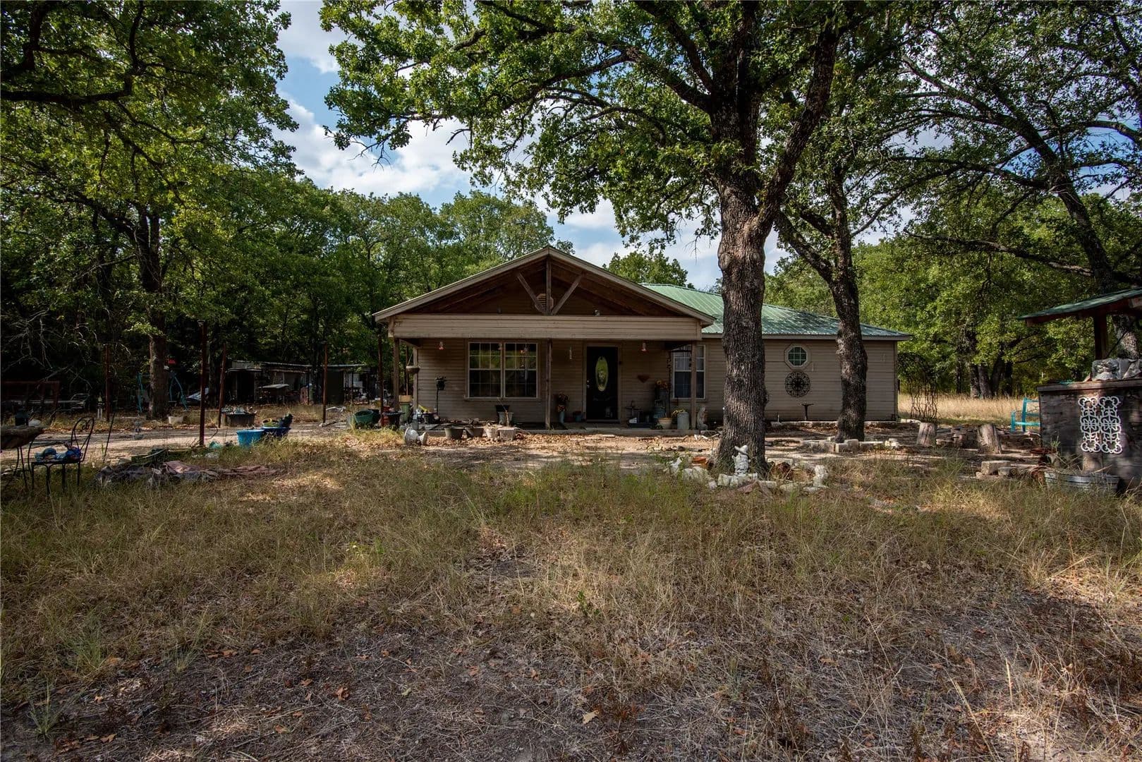 Great opportunity for an investor! Nearly 14 acres of land with a pond! This property has a water well installed in 2023! Are you a creative? This home is a blank canvas for your vision and creativity to your own get away. Lots of mature trees and areas of cleared acreage as well. Private pond has fish! This property also has a 3-bedroom + bonus space, 2-bathroom home is a rare find for those seeking a retreat in need of a little TLC. Home is equipped with a refrigerator, electric cooktop, electric oven, ample cabinetry, and a convenient island. Enjoy the shade on a covered patio. Embrace the potential and make this enchanting space your very own. Owner Financing Available! Ask your agent for details.