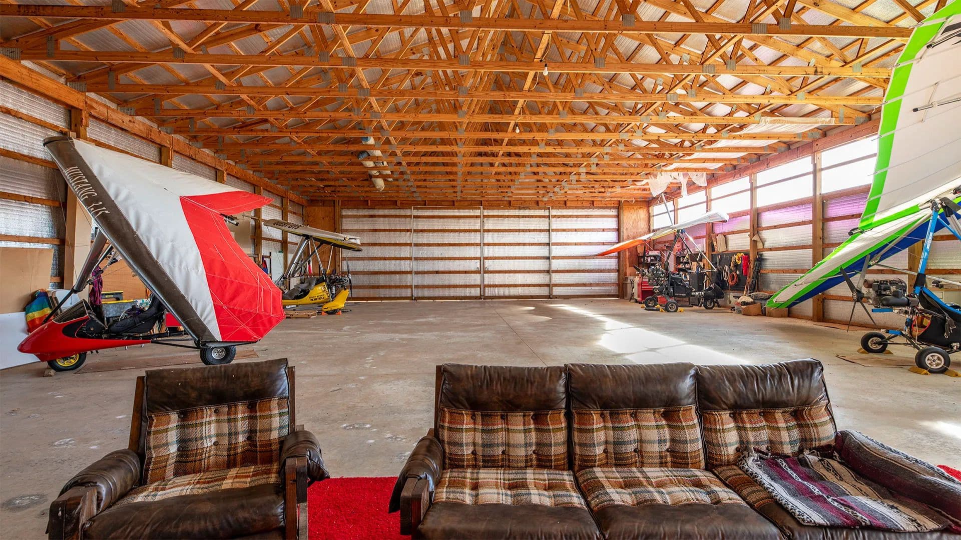 At the center of the property is a 1,700-foot grass runway, mapped for aviation use and originally developed for hang gliding and ultralight aircraft. Today, the strip easily accommodates light sport and small aircraft, offering pilots the freedom to take off directly from their own land—an increasingly coveted amenity among East Coast buyers seeking both privacy and convenience. Complementing the airstrip is a 50' × 72' insulated metal hangar with a concrete floor, ideal for aircraft storage, maintenance, or conversion to additional aviation-related workspace.