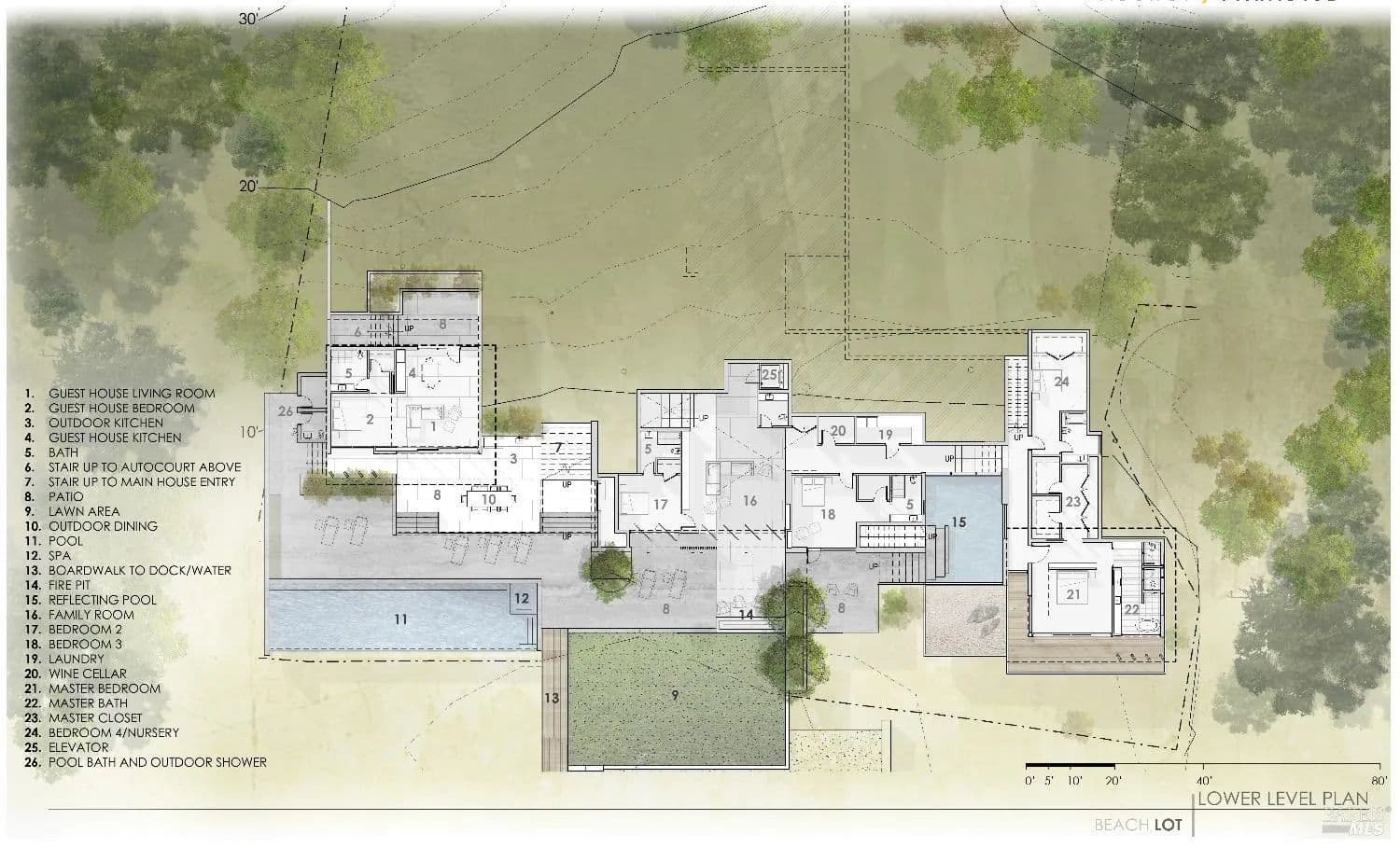 This is a once-in-a-lifetime opportunity to acquire a 7+ acre beachfront trophy property with permit-pending *Approved Plans* for a 5 bedroom, 7 bathroom, 7,300 SF luxe home + a spectacular 1 bedroom, 1 bathroom guest house. Located in highly prized Tiburon CA and in one of Southern Marin's most sought-after neighborhoods, this inspired Californian Modern home was imagined by esteemed architect Sean Bailey who has designed the most elegant glass, cedar, stone, and steel cutting-edge gated luxury estate. With an abundance of naturally occurring level land, the indoor-outdoor living is extended throughout the space with the creation of multiple seamless patios, decks, and outdoor living rooms. This one-of-a-kind modern and luxurious private beachfront estate redefines Bay Area living. Approved amenities include an infinity pool and spa, a yard for play, private auto-court for ample parking, and a spacious 3 car enclosure. A truly unique opportunity offering the most compelling lifestyle.