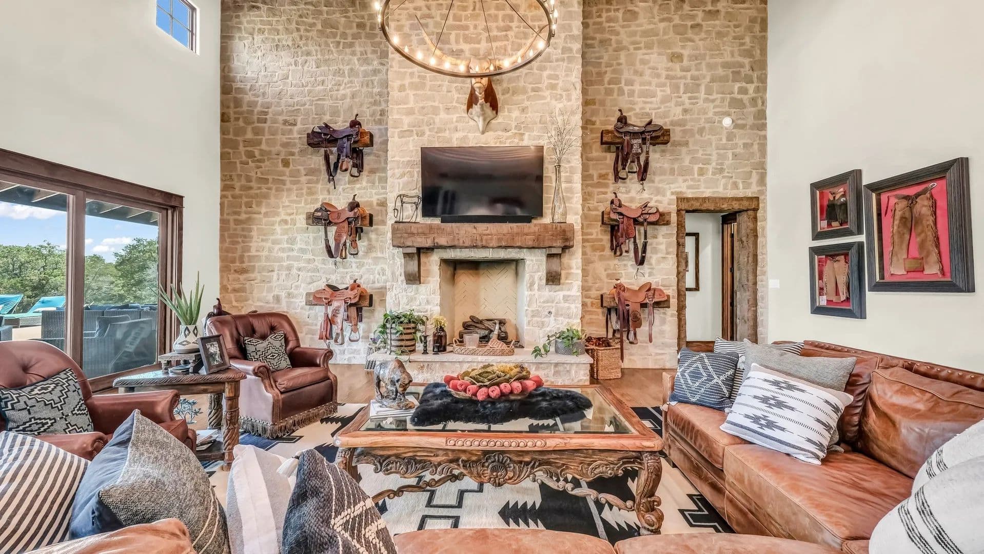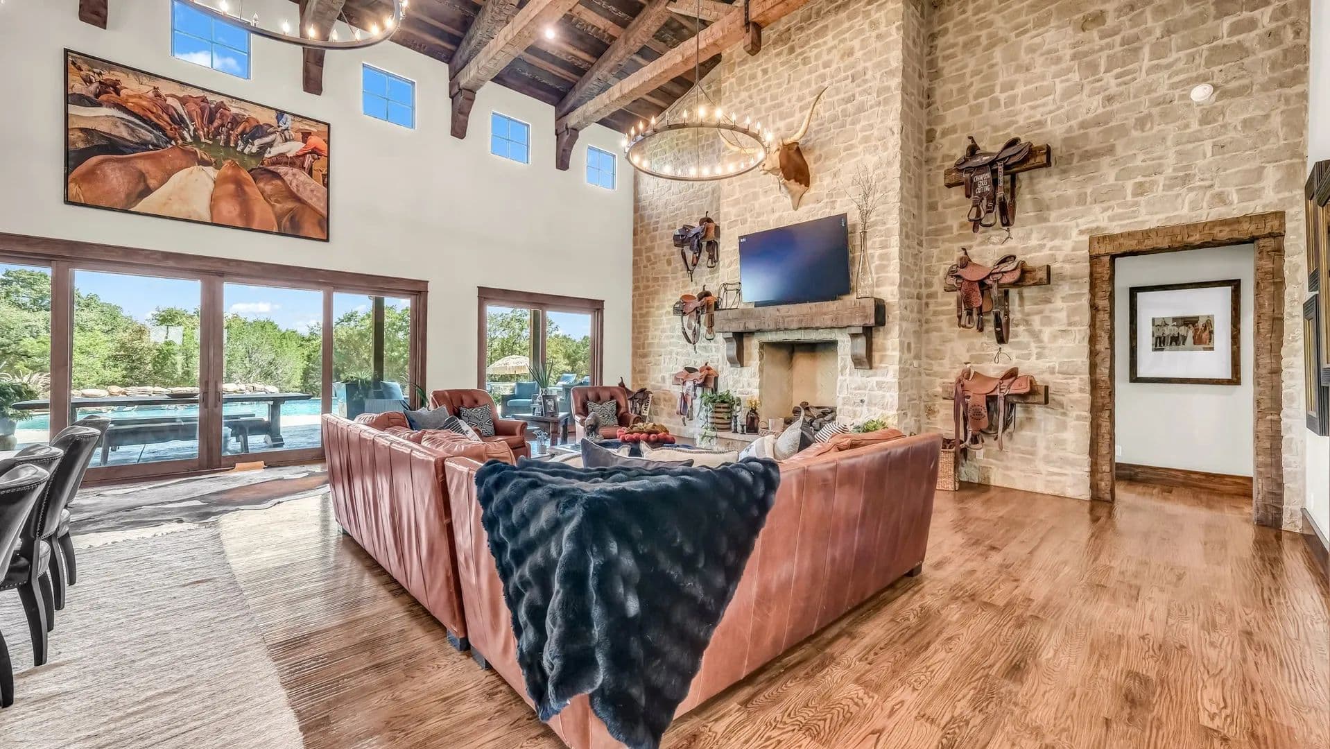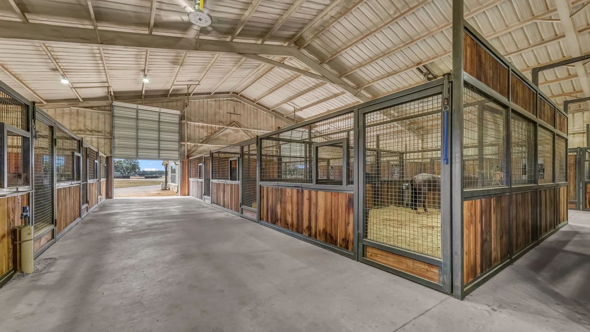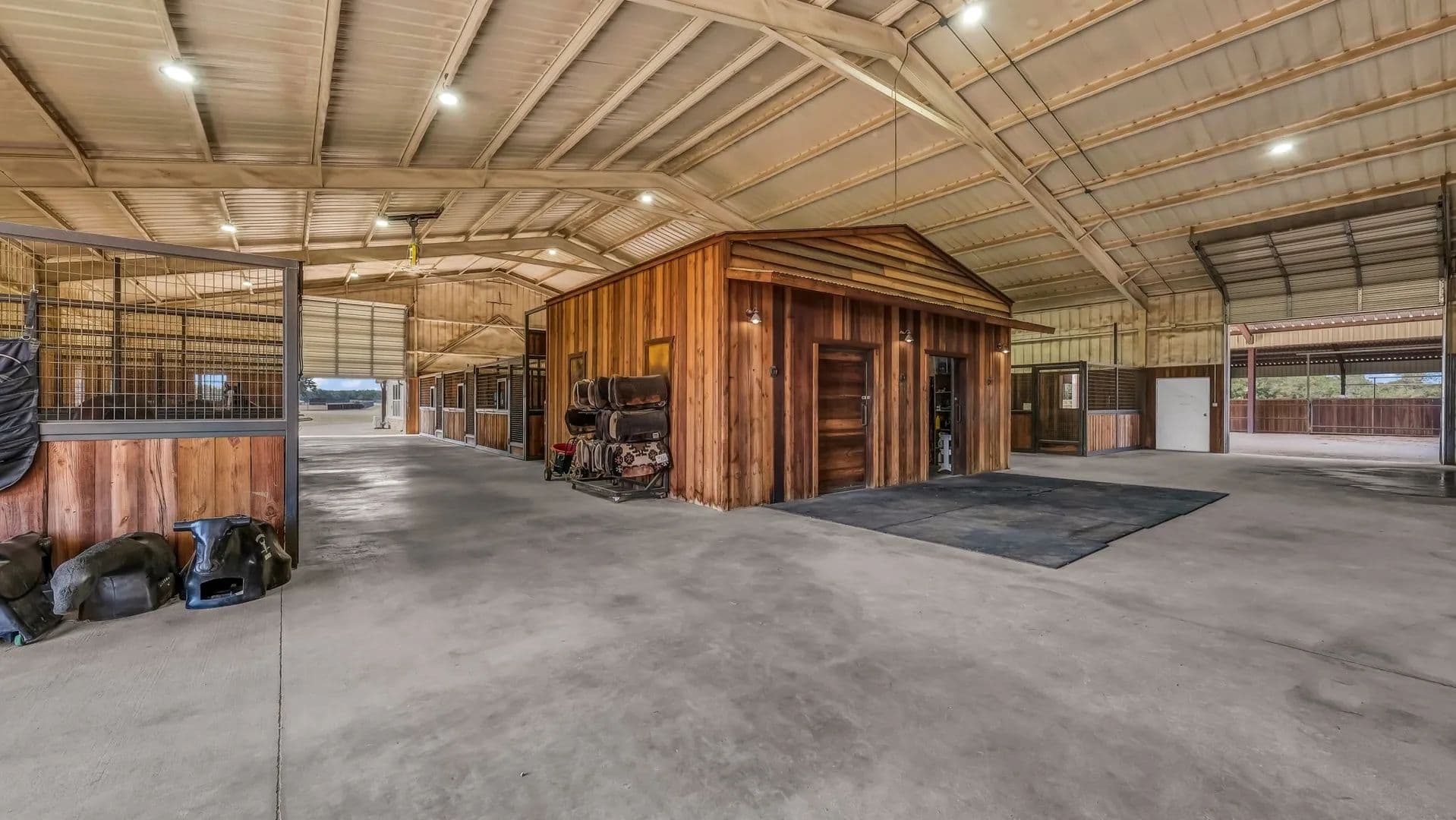 Nestled in the rolling hills of Mineral Wells, this remarkable 69± acre estate combines refined luxury with the serenity of wide-open Texas ranch land. At its center stands a custom 6,114± square-foot residence, thoughtfully designed with five bedrooms, five full bathrooms, and two half-baths. Every detail has been carefully curated, blending rustic elegance with modern convenience. Inside, you’ll find expansive living spaces anchored by a dramatic rock fireplace and soaring wood-beamed ceilings. The chef’s kitchen is a true showpiece, featuring premium appliances, dual dishwashers, a spacious pantry, and a functional layout designed for both entertaining and everyday living. You'll love the butler's pantry that provides additional storage. A wall of windows brings the outdoors in, connecting seamlessly to the back patio and sparkling pool, where sweeping views of the surrounding countryside set the stage for unforgettable gatherings. The master suite is a private retreat, complete with its own stone fireplace, spa-inspired bathroom, and an oversized closet with custom finishes. Additional bedrooms are equally well-appointed, offering comfort and privacy for family and guests alike. Beyond the home, the ranch is built for both leisure and function. Rolling pastures, mature trees, and ample space provide endless opportunities for recreation, livestock, or hay production. There is a seasonal creek that run through the property. The property also features a 125' x 250' covered arena-perfect for any discipline, an 18-stall horse barn, and a Priefert walker, making it ideally suited for any equine needs. This estate offers a rare combination of luxury, seclusion, and versatility—just minutes from Mineral Wells and within easy reach of the DFW Metroplex. This house is a rare find! It was recently featured in the Cowgirl Magazine!