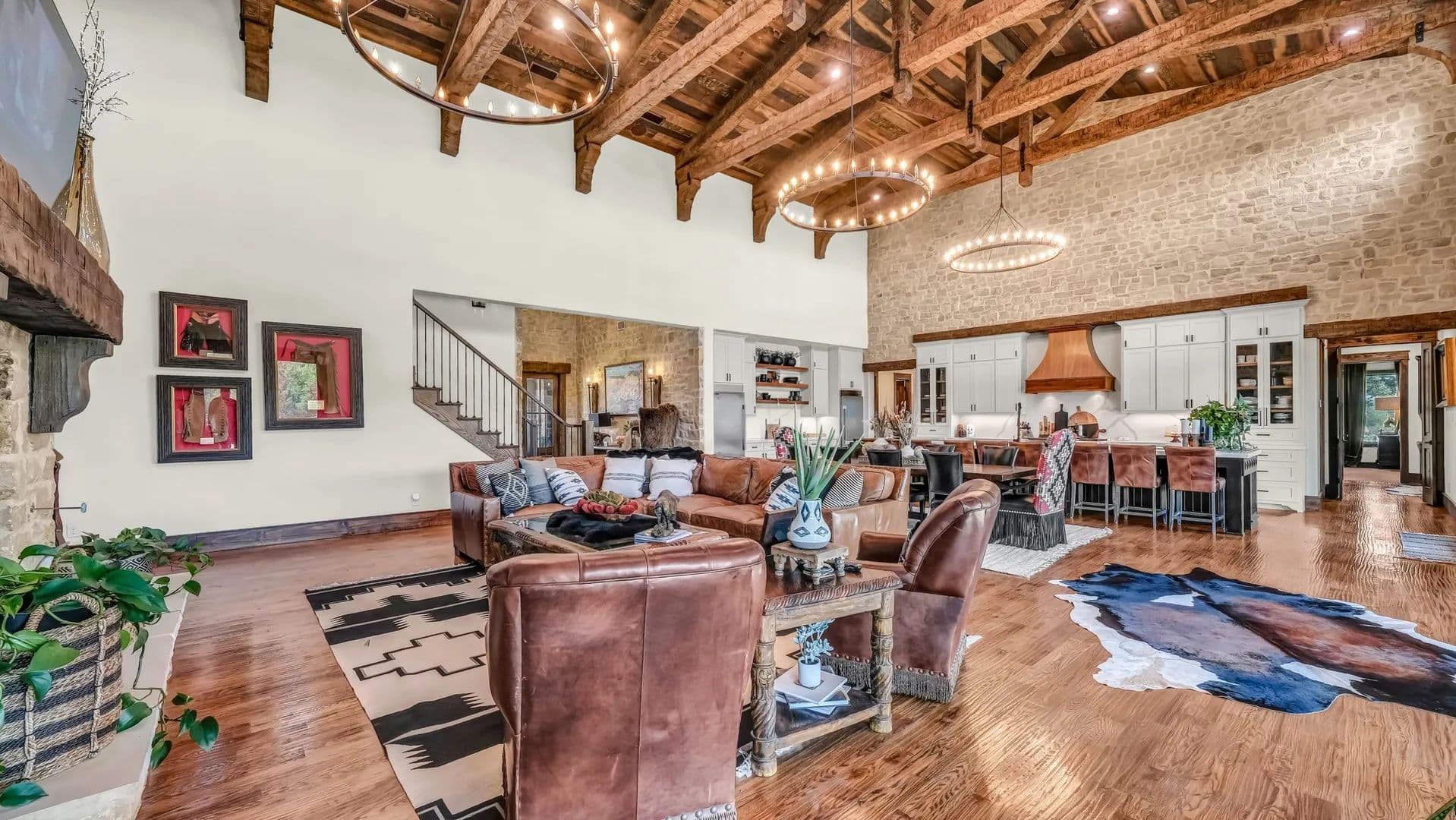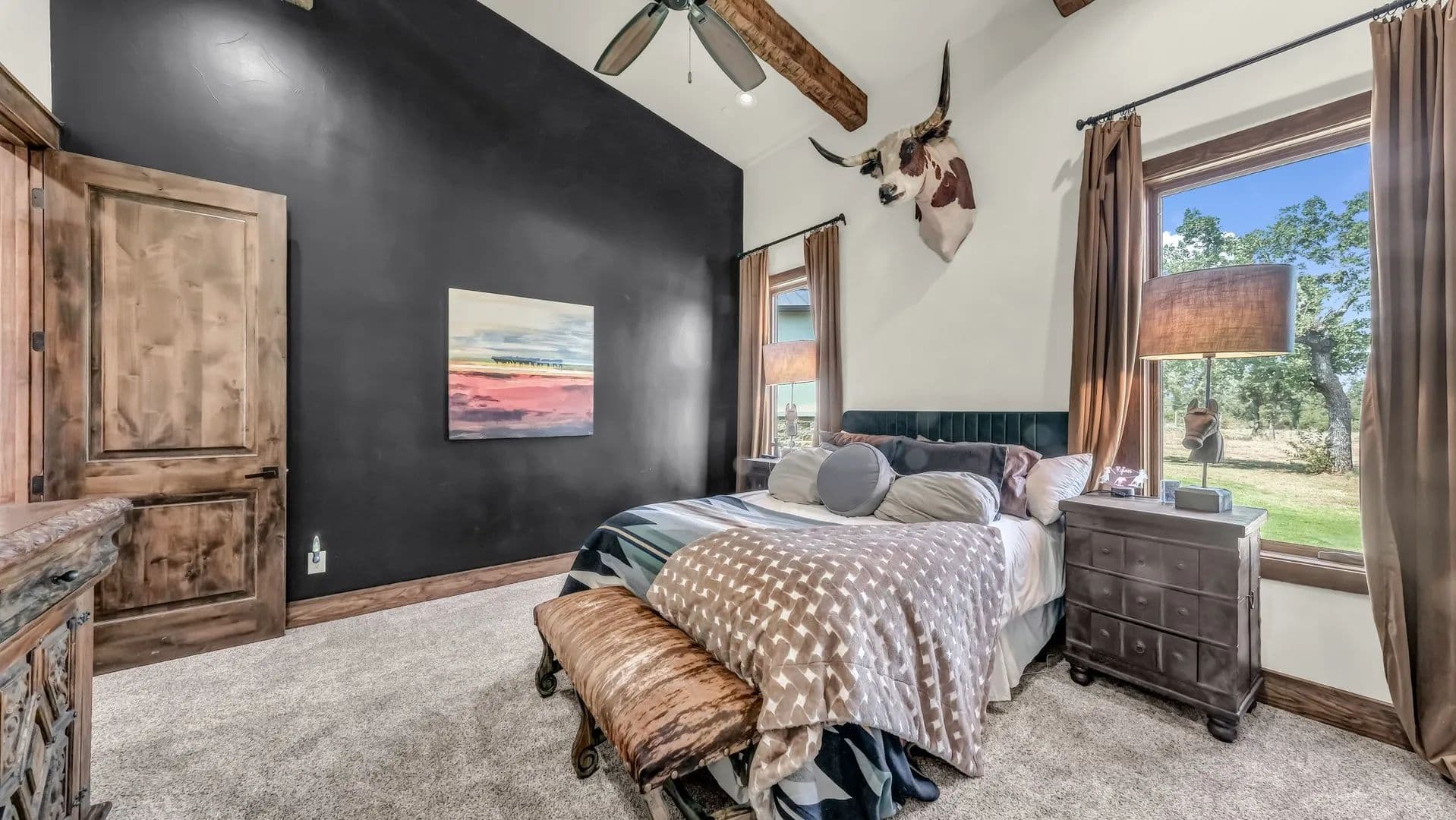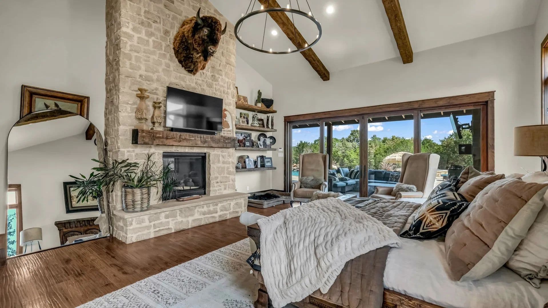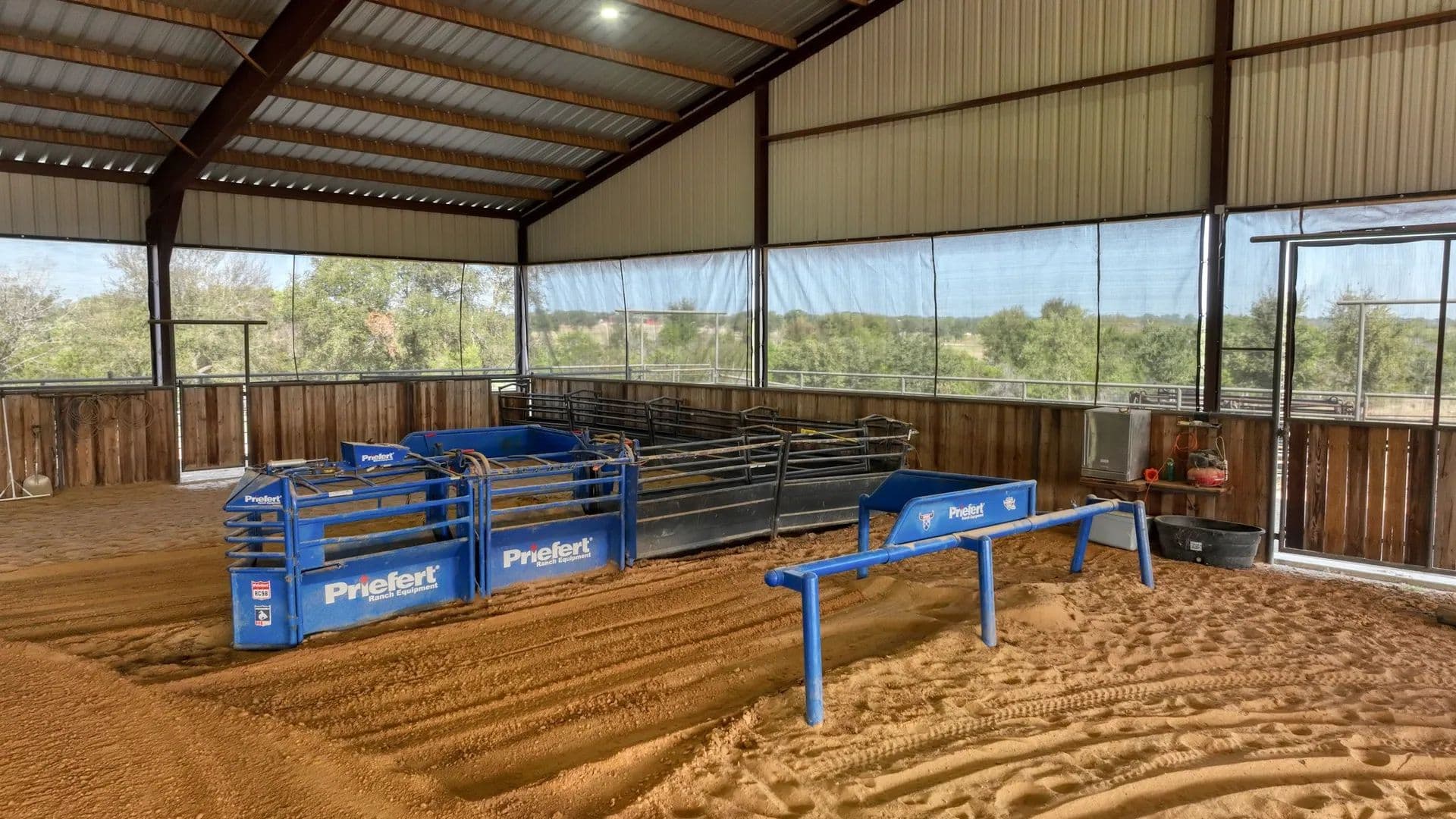 Nestled in the rolling hills of Mineral Wells, this remarkable 69± acre estate combines refined luxury with the serenity of wide-open Texas ranch land. At its center stands a custom 6,114± square-foot residence, thoughtfully designed with five bedrooms, five full bathrooms, and two half-baths. Every detail has been carefully curated, blending rustic elegance with modern convenience. Inside, you’ll find expansive living spaces anchored by a dramatic rock fireplace and soaring wood-beamed ceilings. The chef’s kitchen is a true showpiece, featuring premium appliances, dual dishwashers, a spacious pantry, and a functional layout designed for both entertaining and everyday living. You'll love the butler's pantry that provides additional storage. A wall of windows brings the outdoors in, connecting seamlessly to the back patio and sparkling pool, where sweeping views of the surrounding countryside set the stage for unforgettable gatherings. The master suite is a private retreat, complete with its own stone fireplace, spa-inspired bathroom, and an oversized closet with custom finishes. Additional bedrooms are equally well-appointed, offering comfort and privacy for family and guests alike. Beyond the home, the ranch is built for both leisure and function. Rolling pastures, mature trees, and ample space provide endless opportunities for recreation, livestock, or hay production. There is a seasonal creek that run through the property. The property also features a 125' x 250' covered arena-perfect for any discipline, an 18-stall horse barn, and a Priefert walker, making it ideally suited for any equine needs. This estate offers a rare combination of luxury, seclusion, and versatility—just minutes from Mineral Wells and within easy reach of the DFW Metroplex. This house is a rare find! It was recently featured in the Cowgirl Magazine!
