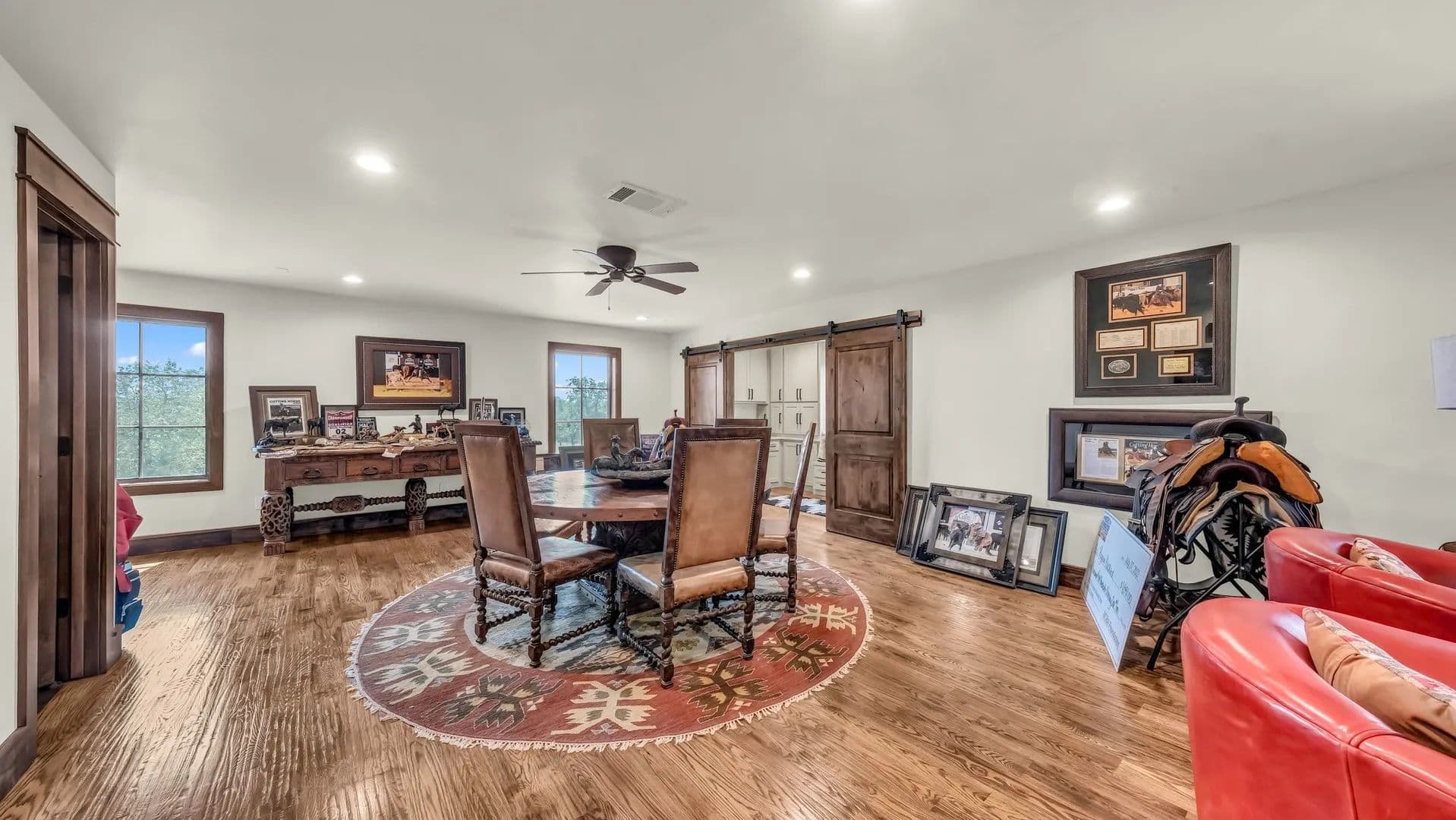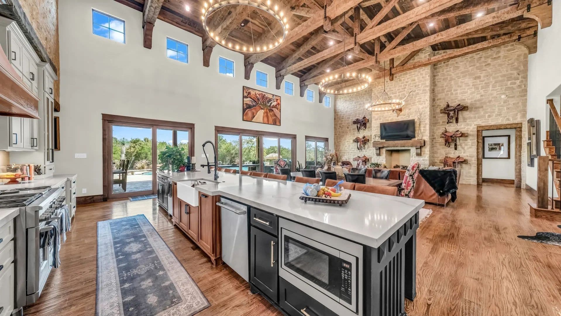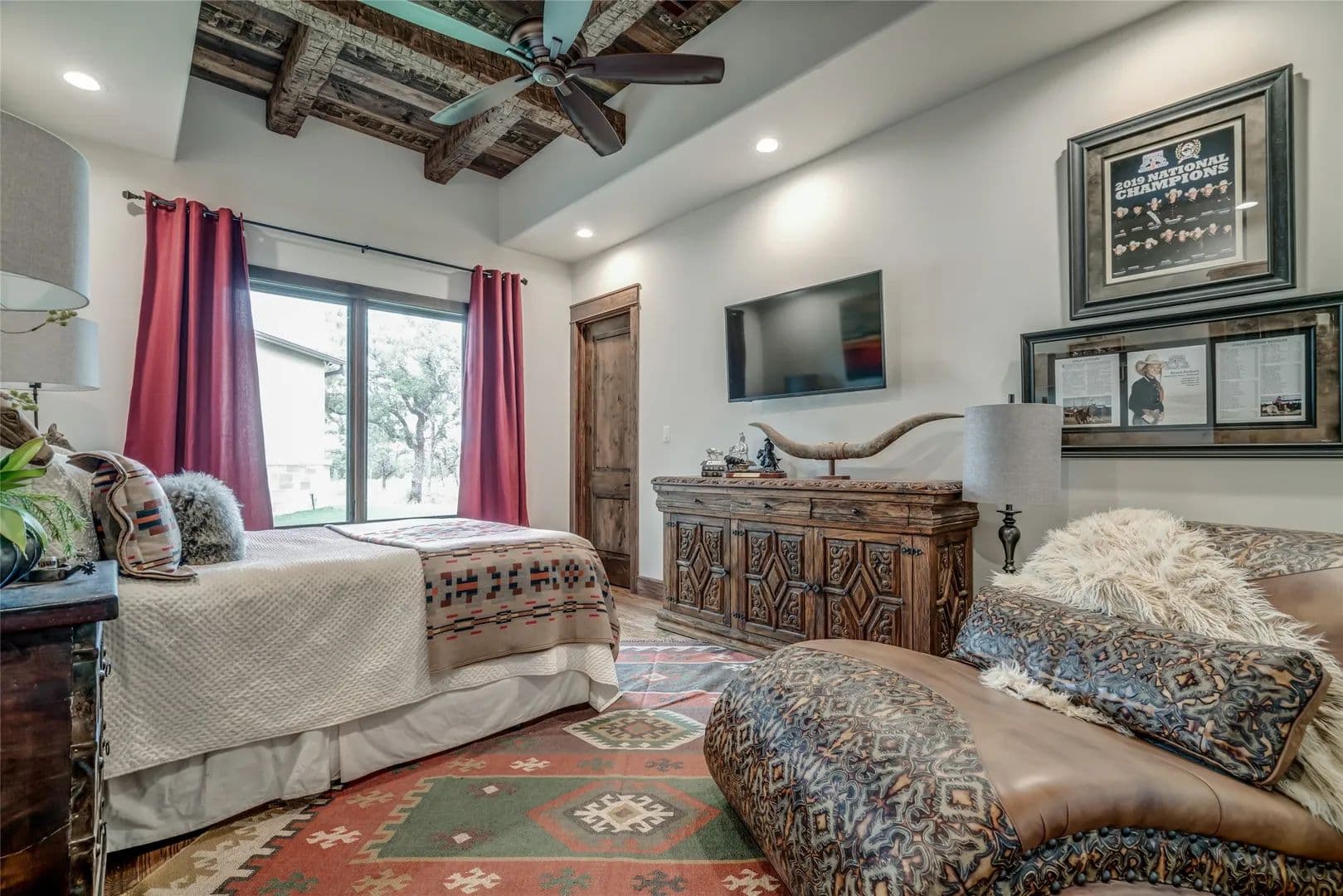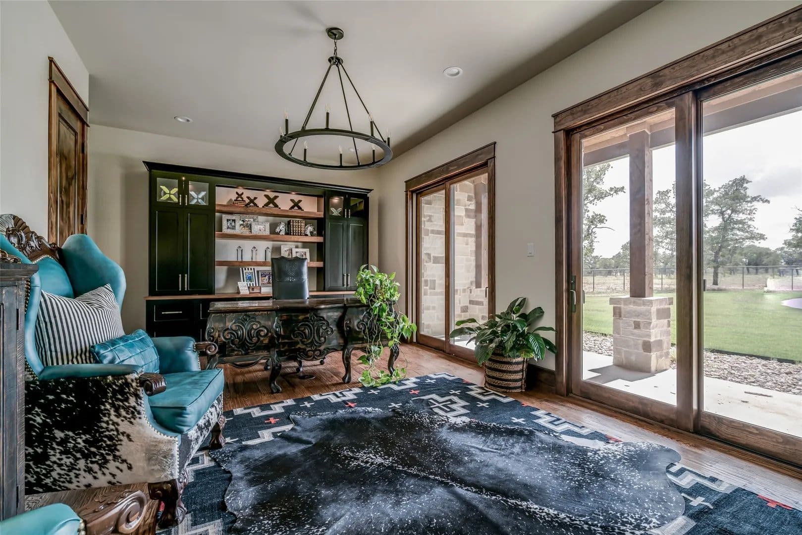 Nestled in the rolling hills of Mineral Wells, this remarkable 69± acre estate combines refined luxury with the serenity of wide-open Texas ranch land. At its center stands a custom 6,114± square-foot residence, thoughtfully designed with five bedrooms, five full bathrooms, and two half-baths. Every detail has been carefully curated, blending rustic elegance with modern convenience. Inside, you’ll find expansive living spaces anchored by a dramatic rock fireplace and soaring wood-beamed ceilings. The chef’s kitchen is a true showpiece, featuring premium appliances, dual dishwashers, a spacious pantry, and a functional layout designed for both entertaining and everyday living. You'll love the butler's pantry that provides additional storage. A wall of windows brings the outdoors in, connecting seamlessly to the back patio and sparkling pool, where sweeping views of the surrounding countryside set the stage for unforgettable gatherings. The master suite is a private retreat, complete with its own stone fireplace, spa-inspired bathroom, and an oversized closet with custom finishes. Additional bedrooms are equally well-appointed, offering comfort and privacy for family and guests alike. Beyond the home, the ranch is built for both leisure and function. Rolling pastures, mature trees, and ample space provide endless opportunities for recreation, livestock, or hay production. There is a seasonal creek that run through the property. The property also features a 125' x 250' covered arena-perfect for any discipline, an 18-stall horse barn, and a Priefert walker, making it ideally suited for any equine needs. This estate offers a rare combination of luxury, seclusion, and versatility—just minutes from Mineral Wells and within easy reach of the DFW Metroplex. This house is a rare find! It was recently featured in the Cowgirl Magazine!